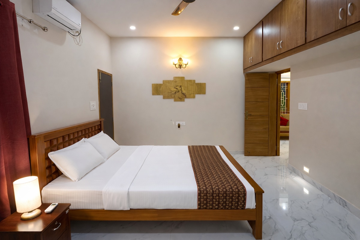 Enjoy a relaxed and stylish stay at Villa de Jeff, a spacious family-friendly villa located close to the best beaches and attractions of Pondicherry. The home features comfortable bedrooms, clean bathrooms, fast WiFi, and a cozy living area perfect for families and groups. Situated in a peaceful area with free street parking, it offers the ideal balance of comfort, privacy, and convenience. Whether you’re here to explore Pondicherry or unwind, this villa makes your stay comfortable and memorable