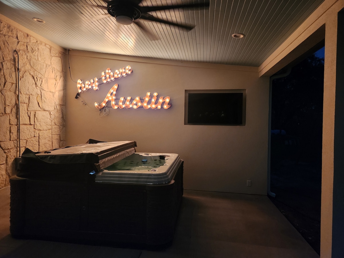 Et donem la benvinguda al teu espaiós refugi d'Austin de 6 dormitoris amb piscina privada, banyera d'hidromassatge i cabana per a festes al centre d'Austin. Has trobat el lloc perfecte per celebrar per a grups grans, que també és prou acollidor i privat per fer una escapada íntima. Aquí pots triar la teva pròpia aventura. Mira les teves pel·lícules preferides des de la banyera d'hidromassatge, banya't a la piscina durant tot l'any, acurruca't al costat de la llar de foc i gaudeix de totes les atraccions properes que Austin pot oferir. Vine a veure de què es tracta l'hospitalitat del sud!