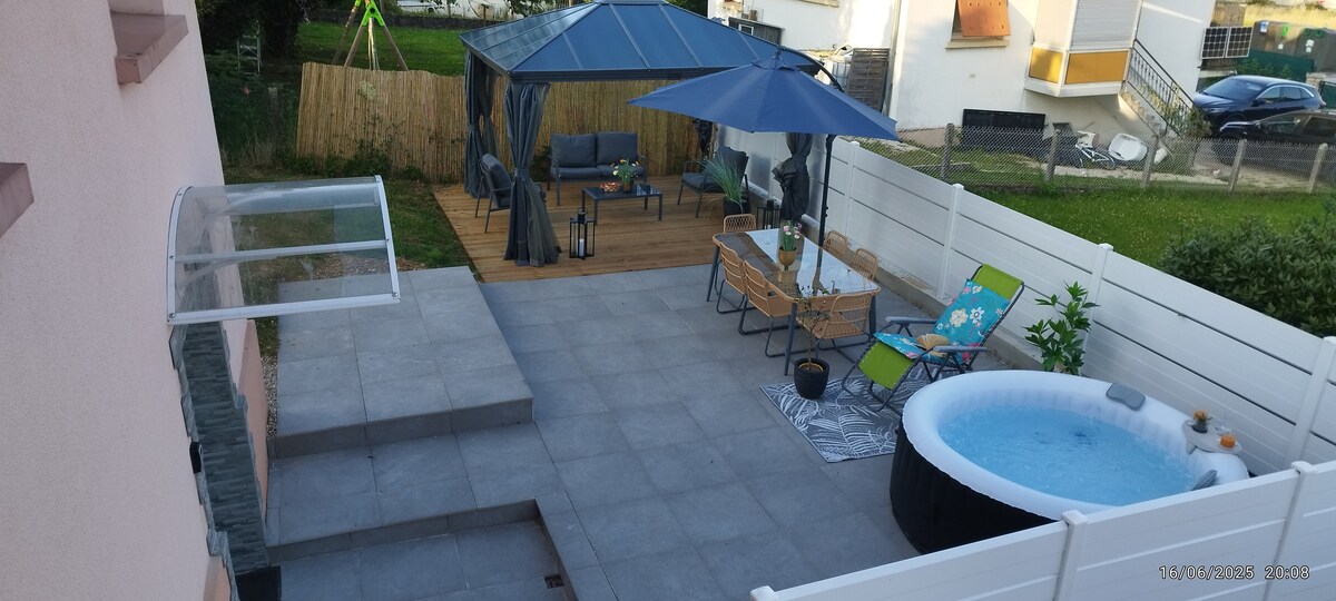 Relaxa't en aquest espai tranquil i elegant. LLEGEIX TOTA LA INFORMACIÓ Gaudeix d'una experiència fascinant amb un autèntic spa canadenc (49 jets d'hidromassatge, aromateràpia, cromoteràpia) Al cor de l'antiga Dole, estaràs aïllat del món. serveis: - Llit de 180 cm - dutxa, Wc - Cuina americana equipada - Spa privat canadenc - Televisor, wifi - llençols necessaris i de bany Indica'ns l'hora d'arribada amb antelació. No després de les 20:00.