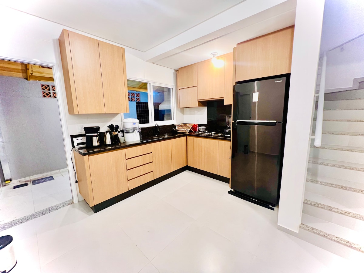 "Et donem la benvinguda a la nostra casa de nova construcció i moblada! Oferim llits còmodes: un llit de matrimoni, un llit de matrimoni gran, dos llits individuals i dos llits individuals, a més d'un bressol. Equipat amb tanques elèctrics, porta electrònica i pany, i càmeres externes per a la màxima seguretat. Situat a prop de Tozetto i Condor de Uvaranas, a només 3 minuts del centre. Gaudeix de la barbacoa i dels elegants fogons de llenya que hi ha al costat per gaudir d'uns moments inoblidables!"