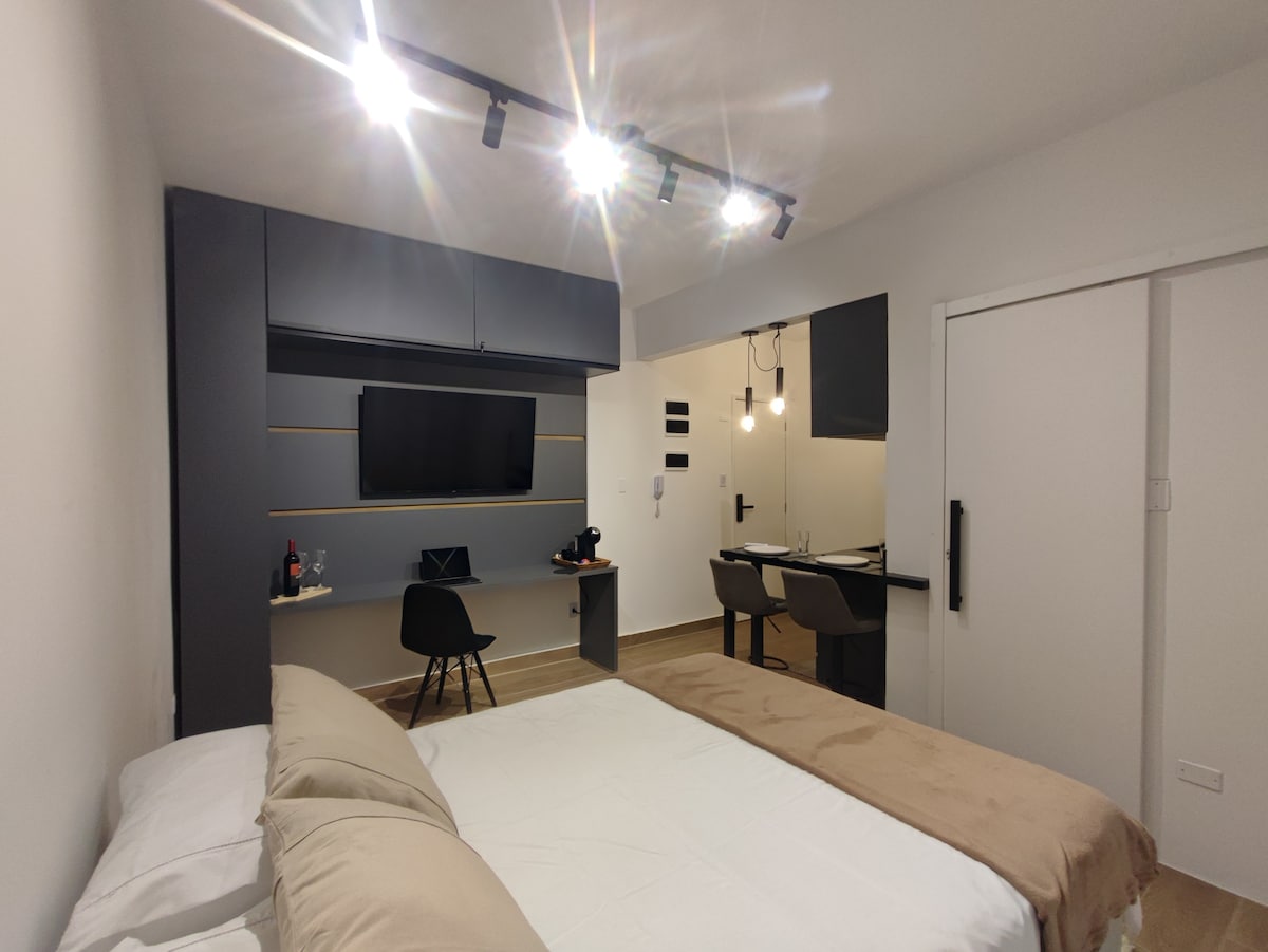 Et donem la benvinguda al teu acollidor estudi a Ponta da Praia, un dels barris amb més encant de Santos. Ideal per a parelles, viatgers de negocis o soles, el nostre allotjament ofereix tot el que necessites per gaudir d'una estada còmoda: Llençols i roba de bany. Garatge col·lectiu insuficient a l'edifici. Entorn integrat amb un llit còmode, armari i televisor. Cuina equipada per preparar àpats senzills. Bany amb dutxa relaxant i màquina d'escalfar tovalloles. Espai compacte, pràctic i acollidor.