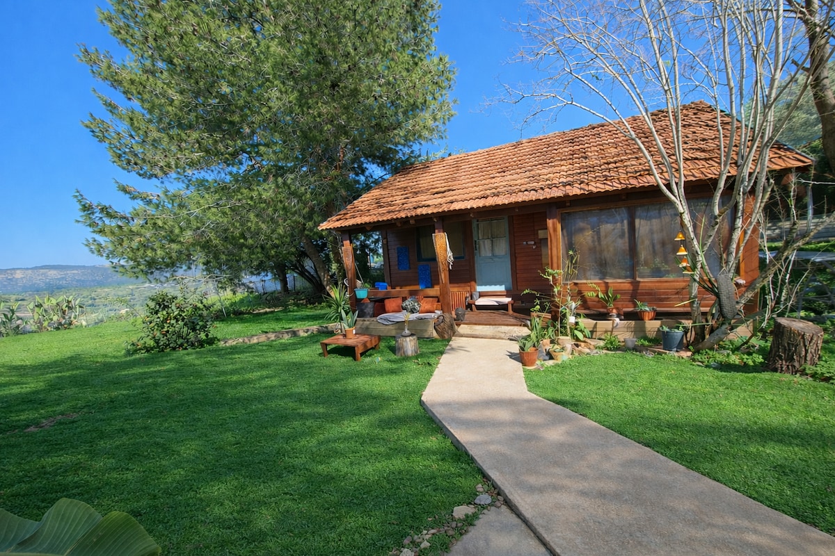 Una caseta màgica en un paisatge galileu, equipada amb tot, amb vistes al bosc amb un jardí exterior i vistes a la muntanya Un bany doble a l'aire lliure Zona d'estar a l'aire lliure, taula de foc Televisor amb una gran varietat de canals wifi Aire condicionat al dormitori i a la sala d'estar Cuina americana totalment equipada Herbes al jardí per prendre el te Cafetera Nespresso llençols i tovalloles, Sistema d'aigua calenta Opció per esmorzars dobles deliciosos