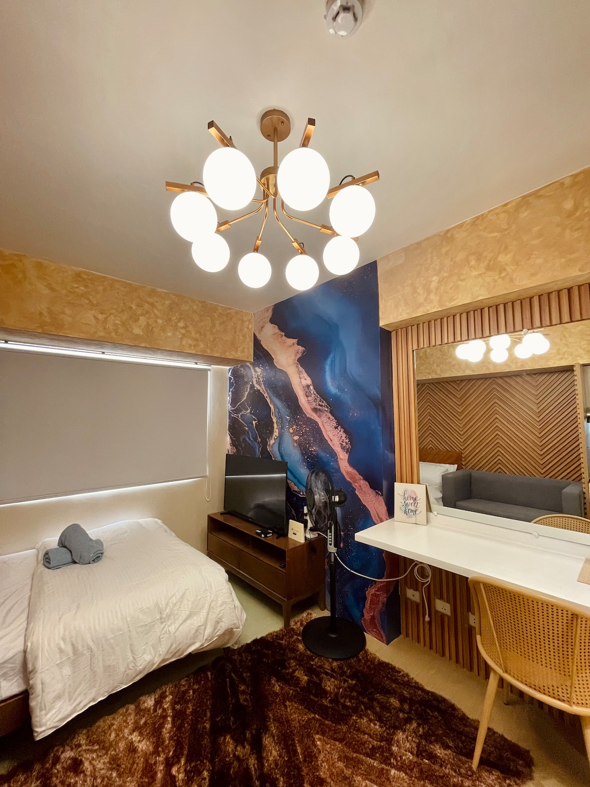 Would you want to stay in and have a romantic time or WFH in our modern cozy home? This is the place that you will need. ✅ 3-5 mins walk to SM City Iloilo ✅ KING-SIZED BED ✅ 5-10 mins by taxi to Iloilo Convention center, Festive Mall and the business park ✅ Hot & Cold shower ✅ Fully equipped kitchen ✅ Netflix w/ 55 inches Smart TV ✅ Shopping and food nearby at SM City, Festive Walk Mall, Megaworld, Riverside Boardwalk or Smallville ✅ Fast and reliable fiber Wi-Fi by Converge (400 MBPS)