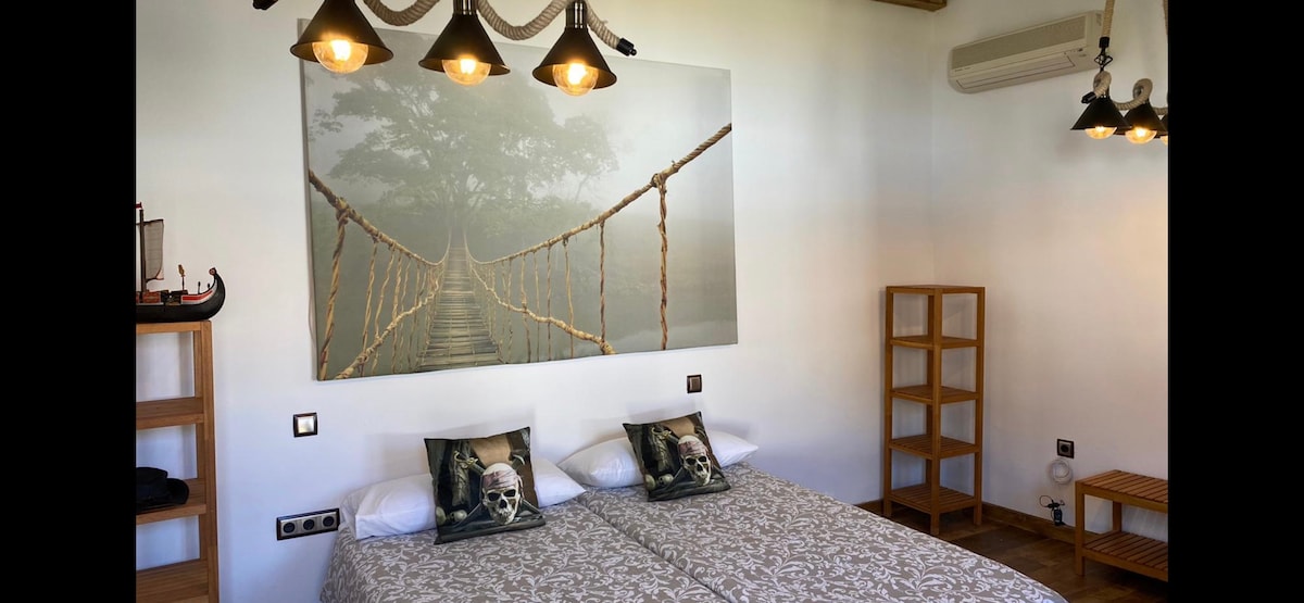 Allotjament a 7 minuts de la ciutat emmurallada (Àvila) Gaudeix d'un allotjament on la natura, la tranquil·litat i les vistes es converteixen en un enclavament únic. Disposa de dos dormitoris grans amb llit de matrimoni, sala d'estar gran i cuina totalment equipada, bany amb dutxa. Un jardí espaiós amb gronxadors, cadires relaxants i una piscina a l'estiu. Gaudeix de la teva estada amb tots els serveis. Consells sobre rutes i activitats de senderisme a prop de la Serra.
