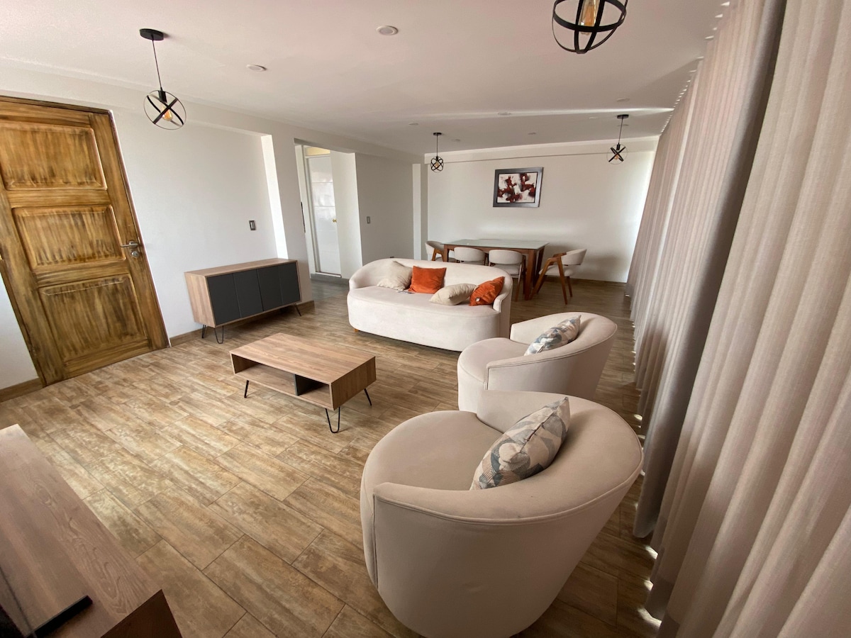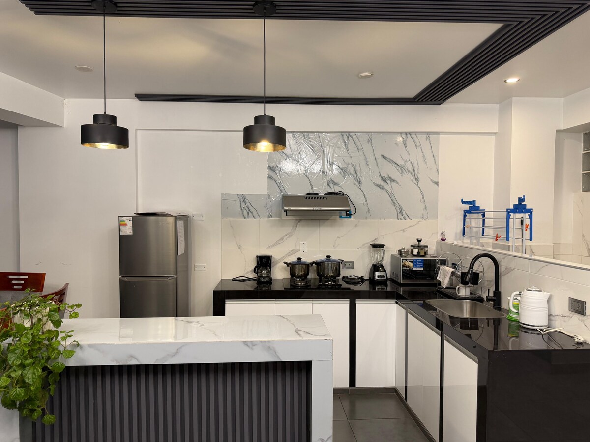 Et donem la benvinguda a Ayacucho, la nostra ciutat heroica. L'apartament és molt acollidor, moblat amb tot inclòs, sala d'estar, cuina, menjador, sala d'estar, bany complet amb aigua calenta, amb llits suaus, també per a famílies amb nens; està molt ben situat a 10 minuts de la plaça d'armes, a 5 minuts de la terminal terrestre, a 20 minuts de l'aeroport, gaudeix d'una zona residencial tranquil·la i segura, a prop de botigues, farmàcies, mercats i transport públic i privat.