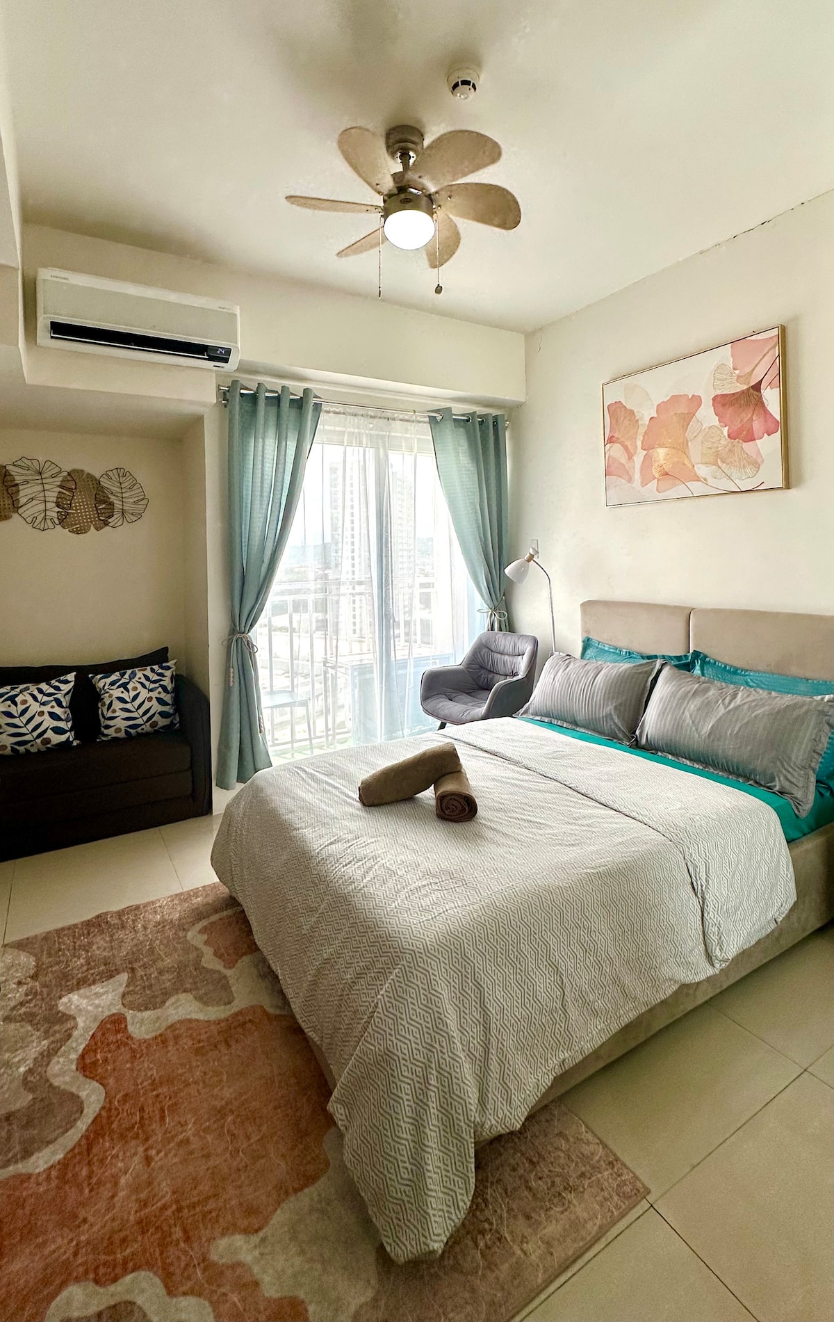 Relaxa't al nostre ampli estudi acollidor a Abreeza Place, Davao City, amb vista directa al centre comercial Abreeza. L'allotjament disposa de llit «queen size», matalàs addicional, cuina petita, wifi, televisor intel·ligent i està a pocs passos de la piscina. Per què t'encantarà? • A 2 minuts a peu del centre comercial Abreeza • A prop d'hospitals, bancs i centres de negocis • A 15 minuts de l'aeroport