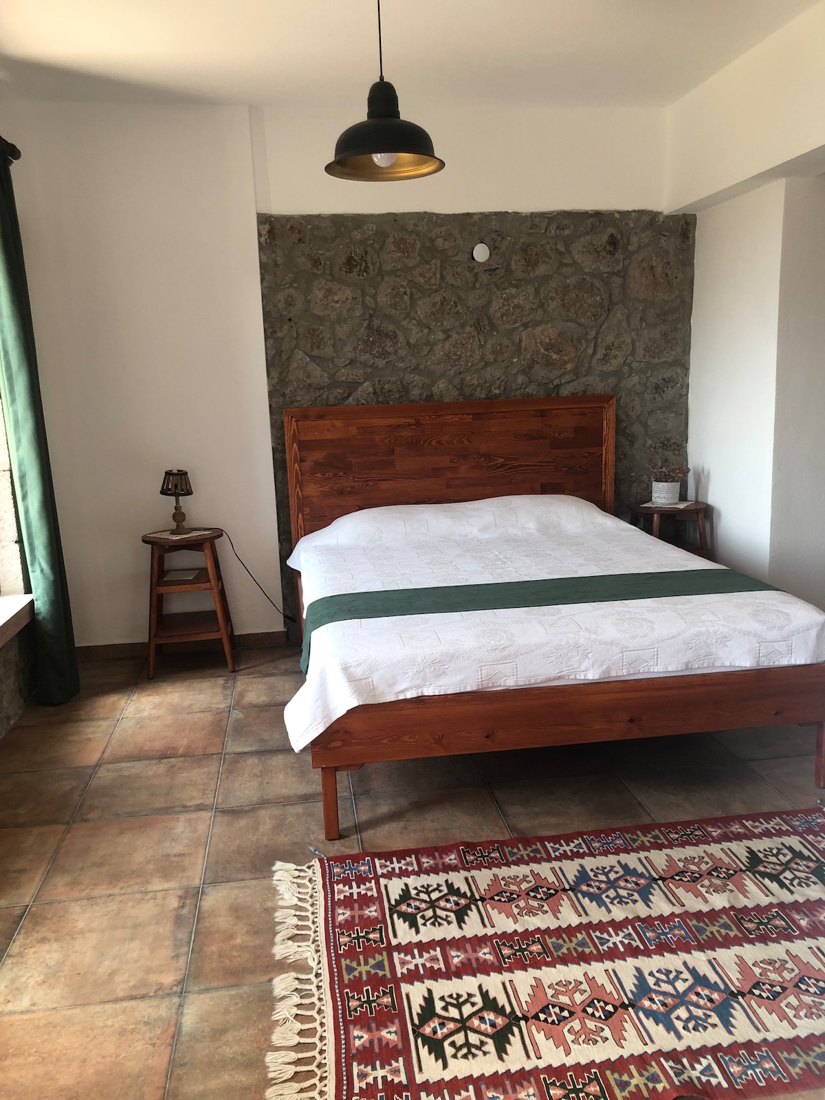 Pırnal Village House consta d'un edifici de pedra amb un gran jardí i vistes al mar entre la vall al poble de Kocaköy, regió d'Assos. Si vols deixar l'estrès de la ciutat darrere teu i fins i tot silenciar el telèfon i prendre un descans de la teva bella ànima i el teu cos cansat, Pırnal és el lloc adequat per a tu.😊 A 5 km de la platja d'Akliman Platges de Sivrice i Sokakağzı a 11 km Ciutat antiga d'Assos a 17 km Temple d'Apol·lo a 3 km Escriu per obtenir més informació. La nostra habitació 9 està a la planta superior i té balcó