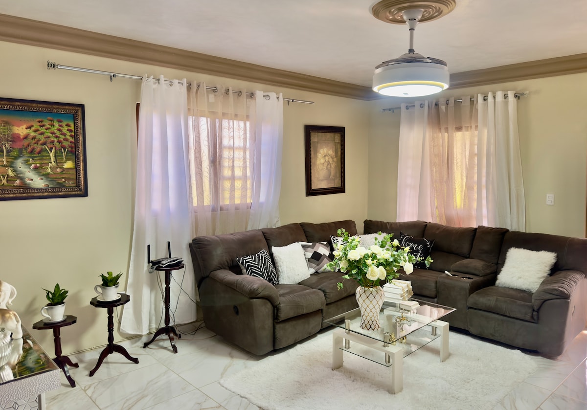 Aquesta acollidora casa es troba en una zona segura i cèntrica, just a l'entrada d'Azua. A només 10 minuts a peu de la Plaça Lama, el supermercat Ole i amb accés ràpid a l'autopista principal. A més, estaràs a només 7 minuts en cotxe de les precioses platges de Monte Río i Playa Blanca. Gaudeix de la vida social del centre d'Azua, envoltat de restaurants, però també de la tranquil·litat que ofereix la seva ubicació. La combinació perfecta de comoditat, accessibilitat i pau!