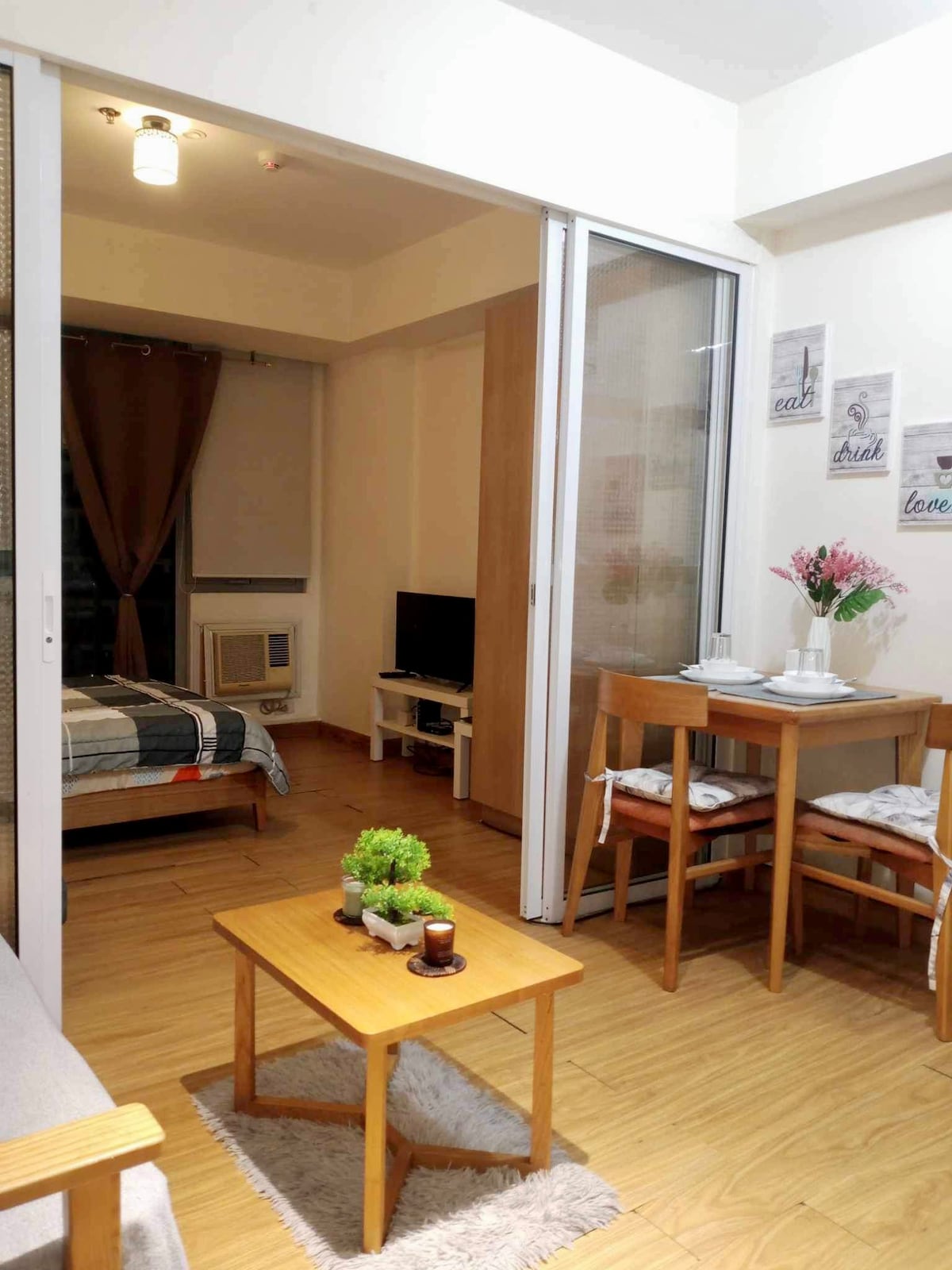 El teu acollidor i feliç lloc @ SMDC Grace Residence, ciutat de Taguig! Escapa't a un refugi urbà assequible i acollidor al cor de la ciutat de Taguig! Aquest espai minimalista però vibrant a SMDC Grace Residence ofereix l'equilibri perfecte entre comoditat i confort, permetent-te "Sentir les vibracions de la vida urbana" sense l'estrès. Gaudeix de vistes espectaculars dels turons d'Antipolo i Laguna de Bay des del teu balcó, de dia i de nit!