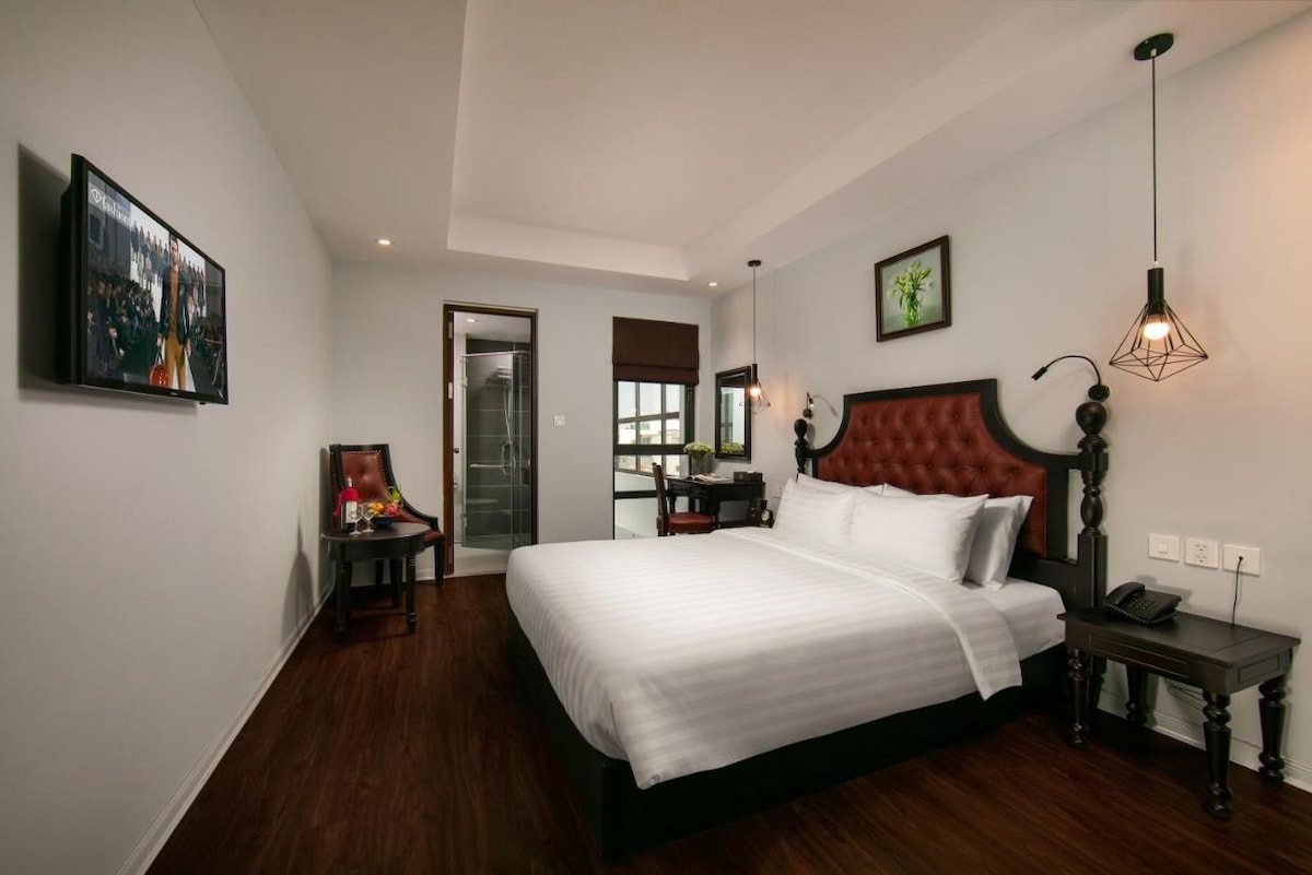 Amb una barreja de comoditat contemporània i encant tradicional, el nostre hotel de 4 estrelles es troba al centre històric del barri antic de Hanói. La nostra habitació Deluxe amb balcó ofereix una escapada de luxe, amb un interior espaiós amb un còmode llit «king size» i equipament i serveis moderns. Un balcó privat per gaudir de les vistes panoràmiques del barri antic de Hanói, que el converteix en el lloc perfecte per relaxar-se després d'un dia d'exploració.