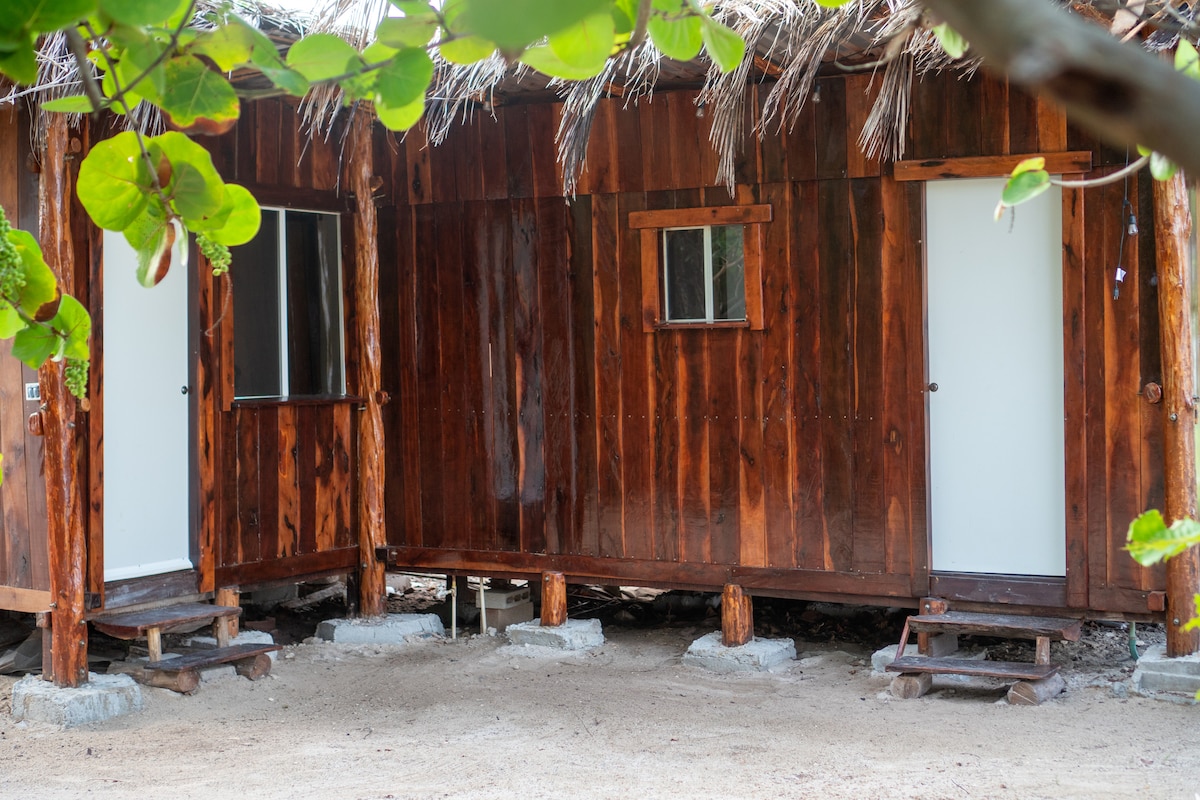 Habitació de tipus caseta de fusta còmoda, fresca i bastant gran amb un petit porxo i una bonica vista de la llacuna i el jardí. Amb 1 llit doble per a 2 persones. Amb electricitat i wifi a la zona de la caseta. Té espai per a 2 hamacs, per la qual cosa és possible allotjar 1 persona més. Escriptori petit i minibar. Bany complet compartit amb una altra caseta més petita. Jardí, palapa polivalent, moll i caiacs. Accés directe a la llacuna.