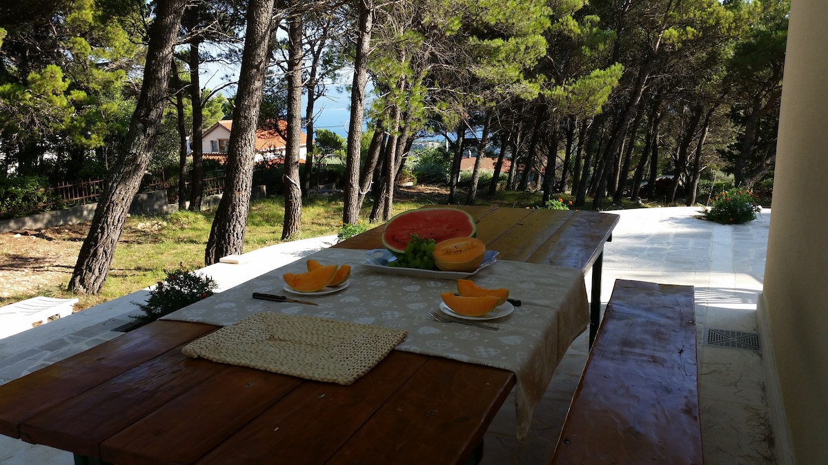 Minicasa acollidora amb una gran zona d'estar a l'aire lliure, enclavada entre pins, envoltada de bells paisatges naturals on LES MUNTANYES, el RIU i el MAR es reuneixen. La pau i la tranquil·litat t'esperen, situades a només 10 minuts en cotxe de la ciutat d'OMIŠ. Lloc perfecte per a parelles amants de la natura que busquen aïllament, privacitat i ambient de retir, però molt a prop de nombrosos llocs meravellosos, platges precioses i atraccions turístiques.