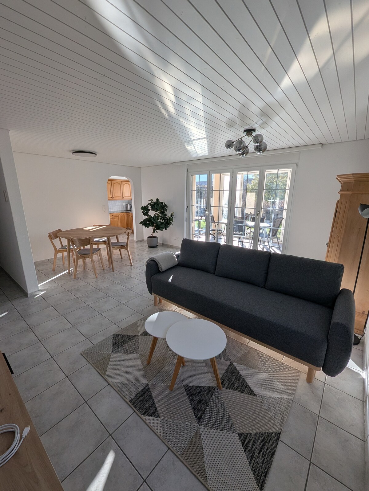 Pis d'hostes nou i modern a la part de la casa adjunta. L'apartament estudi disposa de tres habitacions connectades per 4 o 7 passos L'habitació del mig amb saló menjador i cuina és molt lluminosa amb vistes al castell de Sargans. El seient superior ofereix unes vistes panoràmiques fantàstiques del pany i un gonzen. El pis d'hostes és ideal per a 2-4 persones. Llit doble gran, llit de la caseta a l'habitació superior, sofà llit o llit plegable. Si ho sol·licites, utilitza la banyera d'hidromassatge, la sauna i la rentadora.
