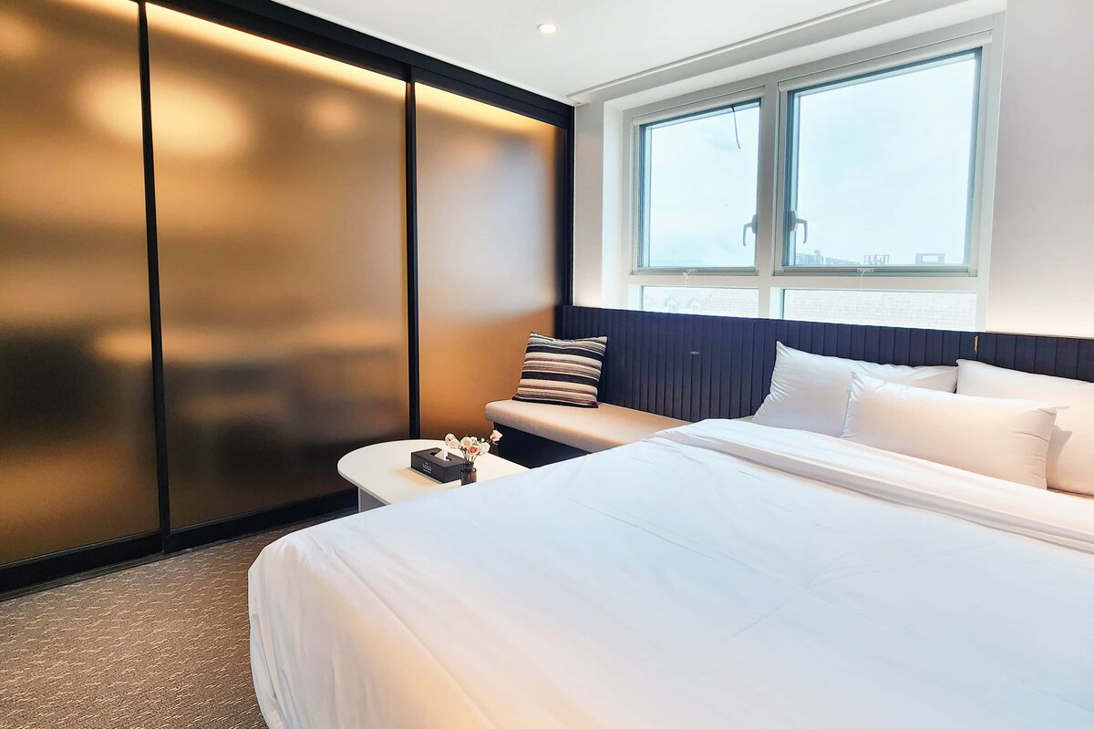 🏡[Hotel Bella] 20 📍City Hall-gil, Chuncheon-si, Bela City, Chuncheon 🚗aparcament Registre d'aparcament gratuït disponible: es requereix un número de matrícula complet Configuració 🛏️de l'habitació Llit «queen size» còmode per a una estada en parella o més llarga La roba de llit es canvia incondicionalment quan es manté l'habitació Prestacions 🍽️de cuina Proporciona vajilla i plats per al nombre de persones (X addicionals) Cuina d'inducció, nevera 🛏️Prestacions: 2 litres d'aigua mineral (4 ampolles per nit) Tovalloles (8 per nit) No rentis → les tovalloles Renta a mà, netejador d'escuma, sabó, tovallola de dutxa Gel de dutxa, xampú, condicionador, assecador de cabells Pasta de dents, tocador 📶Instal·lacions 🌐 Wifi (internet il·limitat i alta) 📺 Android TV/Netflix disponible (※ Només es proporciona plataforma) 🕓Horari d'ús Arribada: 15:00 (entrada sense contacte) Sortida: 11:00 🛍️Serveis a prop de l'allotjament Botiga: uns 20 metres Estació de Chuncheon, Legoland: 5 minuts amb cotxe A 5 minuts a peu de: Bancs, centres comercials subterranis, compres (Brown 5th Street), mercat tradicional, carreró de costelles de pollastre Suggeriments de 🍽️restaurants i llocs d'interès turístic Es poden recomanar restaurants locals, es poden recomanar cursos de turisme
