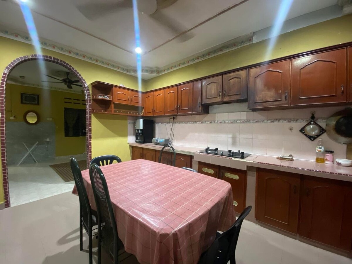 Espai per dormir: 3 habitacions 1 vàter 1 bany Llits : 3 llits queen + 1 llit individual - Planxa (1 unitat) - Aire condicionat (2 unitats) - Filtre d'aigua (Coway 1 unitat) - eines de cuina/ gas (1 unitat) - Matalàs addicional (toto 2 unitats) - Estores de pregària/ Telekung (2 unitats) -Tv/ astro (1 unitat) - Llits (10 unitats) - Nevera (1 unitat) -1 taula +cadira ( 5 persones) - Joc de placa/tassa - Articles de bany gratuïts (sabó/pasta de dents) - Procés de dutxa i bany - Bany (assegut)