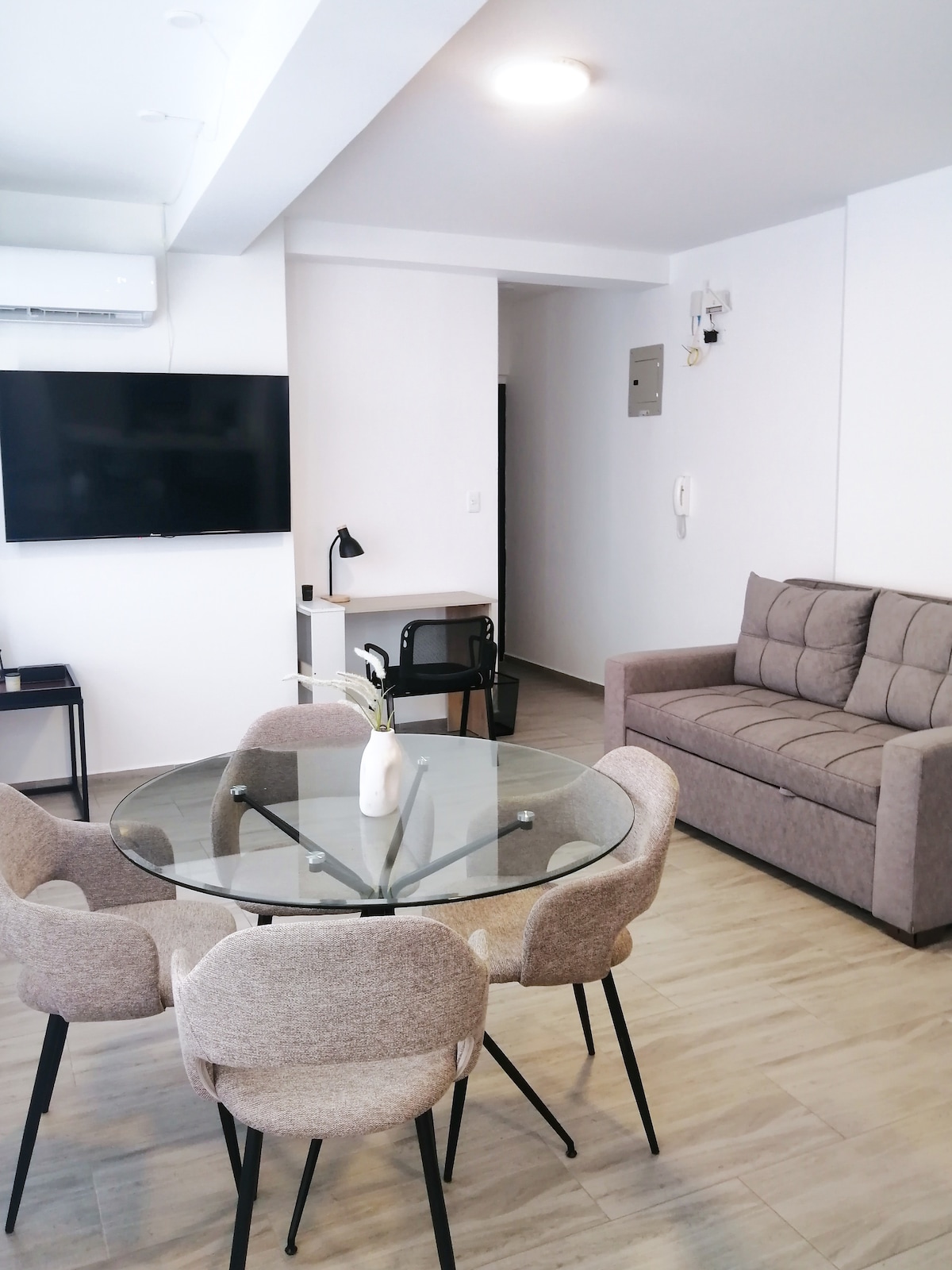 Pis modern amb vistes al mar, a uns passos de la platja El Murciélago (lloc per a Ironman 70.3), el centre comercial del Pacífic i els millors restaurants locals. Perfecte per a vacances/treball a distància amb un monitor. Tranquil, lluny del soroll del carrer. Seguretat les 24 hores i internet de fibra òptica d'alta velocitat. Els serveis inclouen piscina, sauna i jacuzzi (obert de dimarts a diumenge, pot canviar sense previ avís). L'edifici disposa d'un generador per a les zones comunes i un Ups manté el wifi en funcionament. L'ascensor, l'aigua i l'internet funcionen durant les interrupcions.