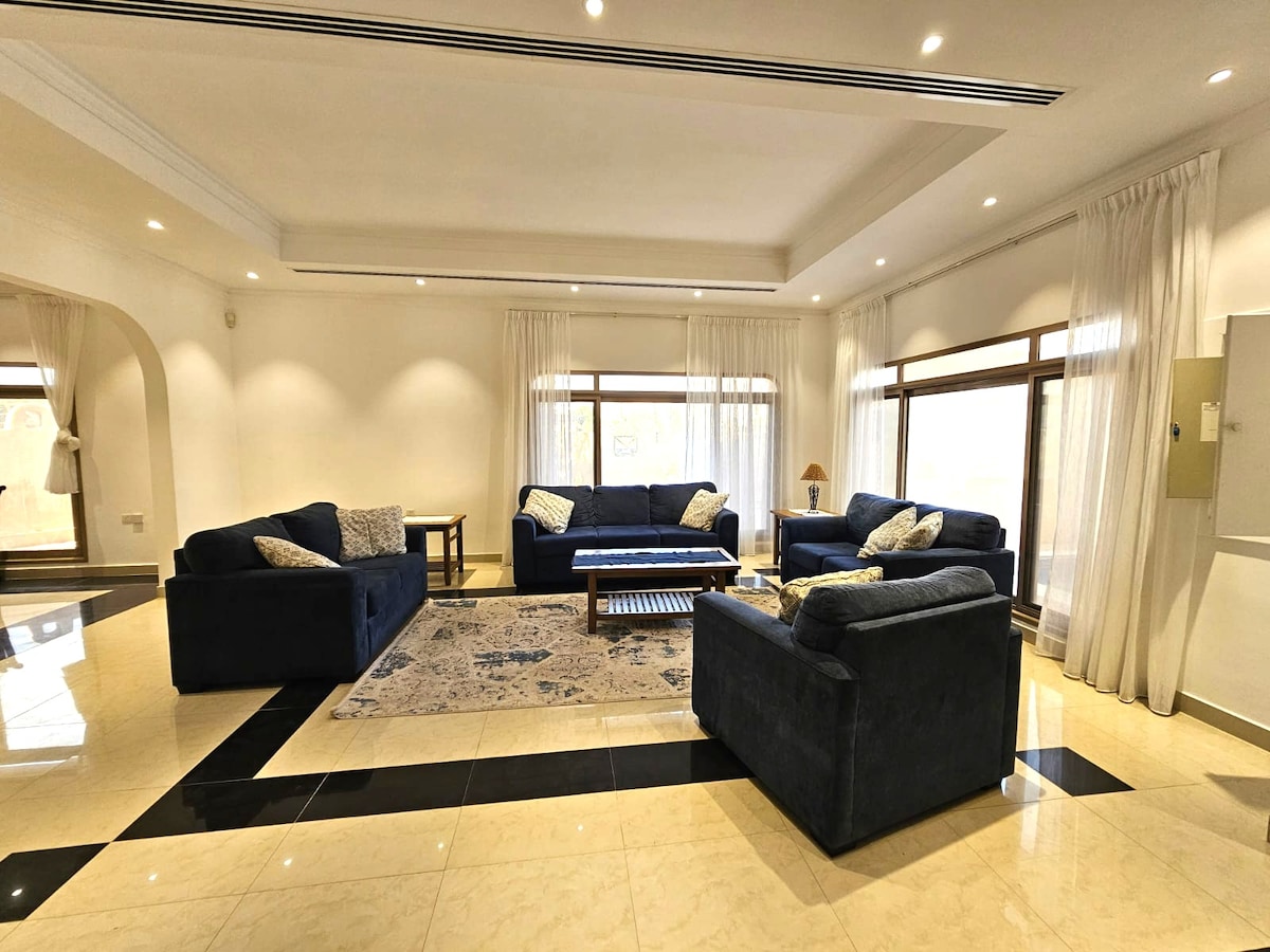 El pis està situat a la zona de Janabiyah És una zona tranquil·la lluny de les molèsties de la capital i, al mateix temps, es serveix per totes les necessitats, com ara: un supermercat les 24 hores, restaurants i llocs d'entreteniment. La zona és l'opció més adequada per a famílies i tothom a qui li agradi estar lluny del soroll, dels hotels i de les seves activitats. Zona tranquil·la i amb serveis, a prop de King Fahd Causeway Complex de Liwan: 8 minuts amb cotxe Districte 1 : 9 minuts amb cotxe Zona de Seef: 15 minuts amb cotxe