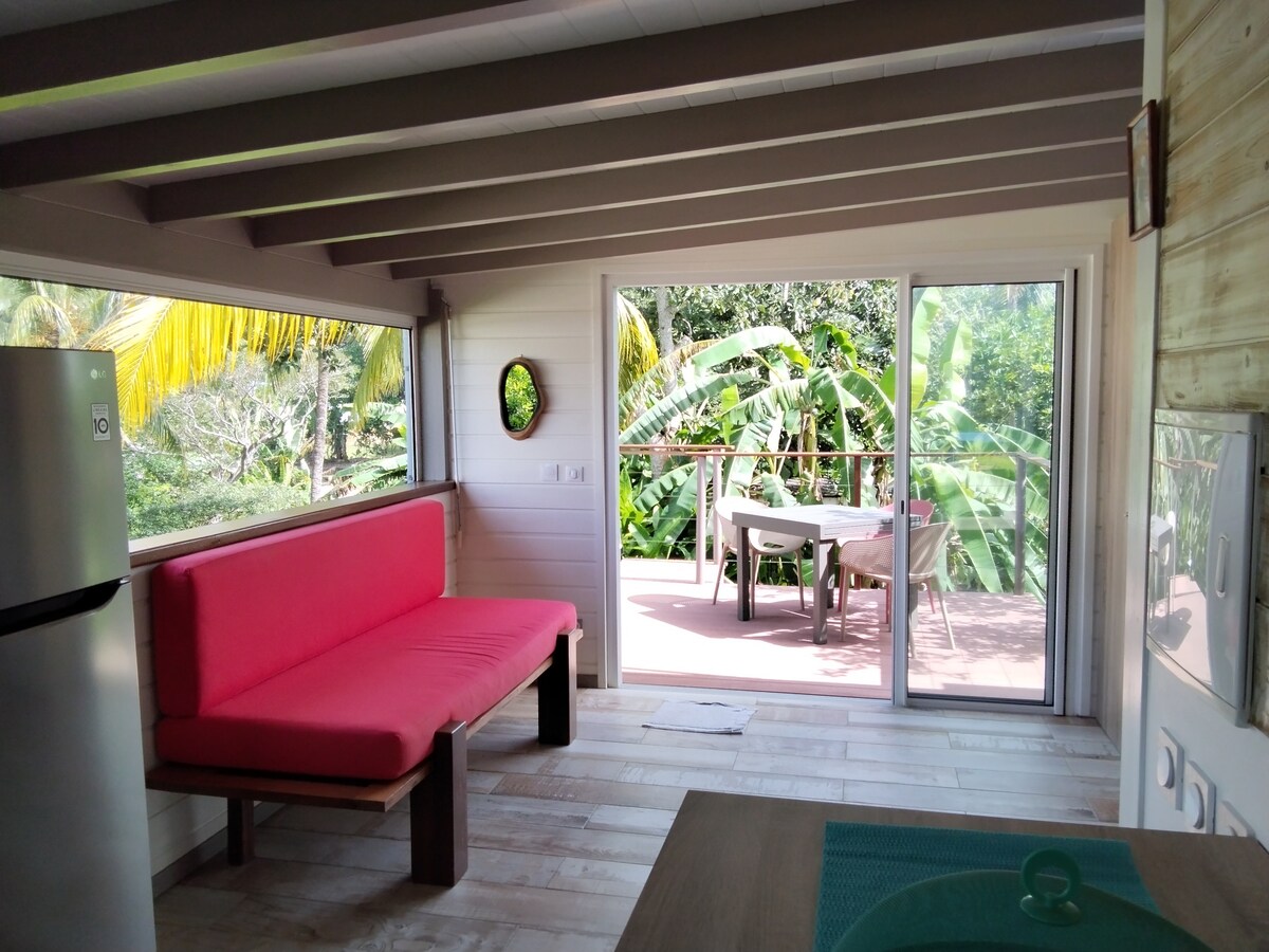 Aquest allotjament consta d'una sala d'estar amb tėlė i hifi (sala d'estar, menjador obert). Un dormitori amb aire condicionat i xarxa antimosquits, un bany amb dutxa, una cuina equipada ( microones, cafetera, tetera, tostadora, escut, rentadora, planxa i taula de planxar, barbacoa, una terrassa i una petita i tranquil·la zona per prendre el sol. L'allotjament està convenientment situat entre Grande-Terre i Basse-Terre , a 8 minuts de l'aeroport.