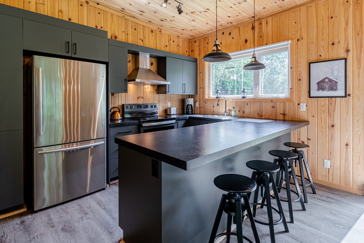 El xalet ONИEA és un refugi ple de natura per a famílies i amants de les emocions fortes. Recarrega't amb teràpia de calor o fred i unes vistes encantadores del bosc. T'oferim: ✔ Cuina amb electrodomèstics moderns ✔ Espai termal: banyera d'hidromassatge, sauna, dutxa exterior ✔ Foc, barbacoa i pati espaiós ✔ 8 places d'aparcament gratuïtes ✔ 3 dormitoris amb vista al bosc ✔ A prop de rutes de senderisme, ciclisme i esquí ✔ A 20 minuts en cotxe de Le Massif ✔ A 7 minuts en cotxe del sender Gabrielle-Roy ✔ A 11 minuts en cotxe del Parc des Riverains