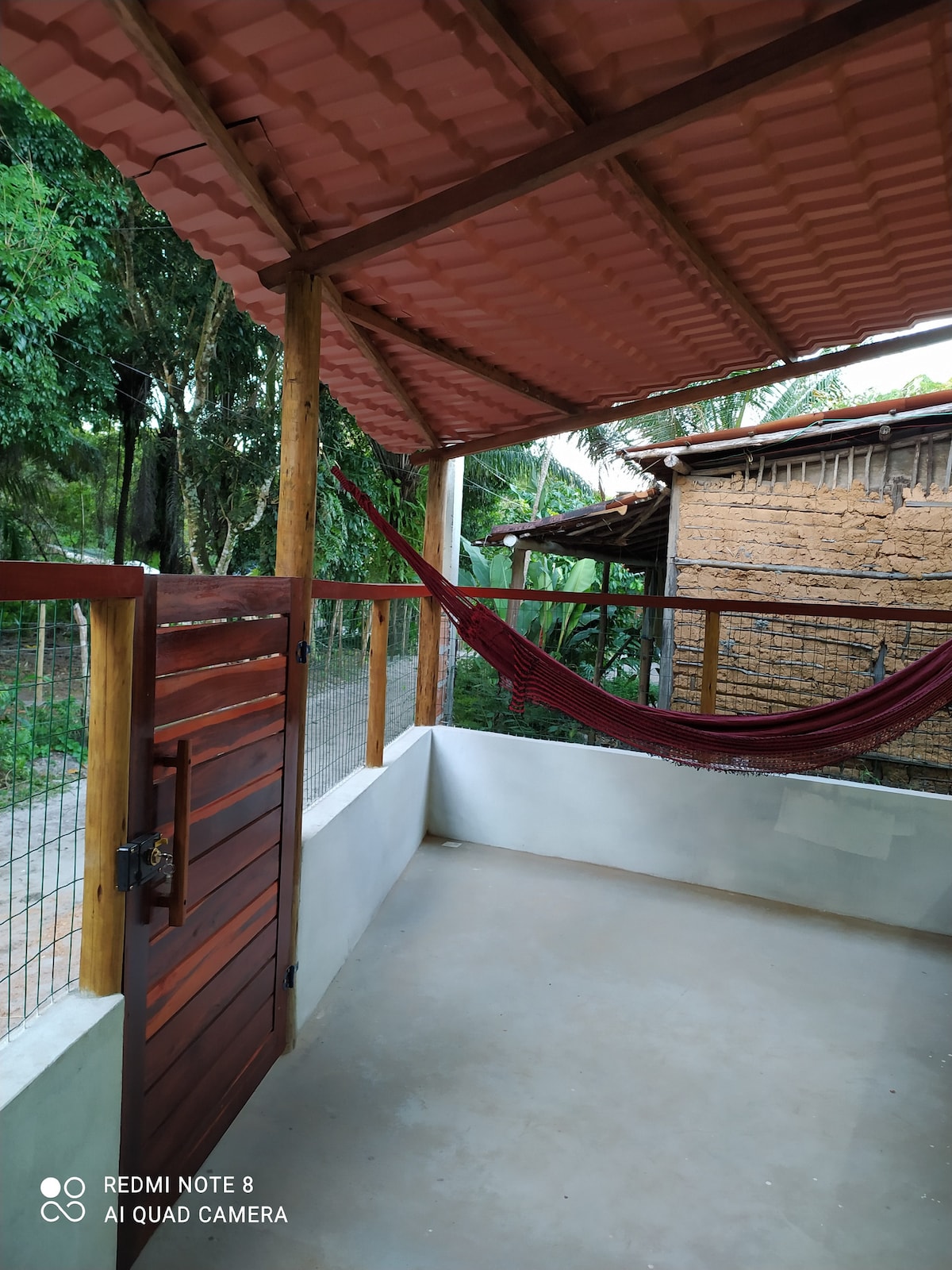 Refugi al bosc de l'illa de Boipeba. A 800 m-Piscinas Naturais do Moreré, 200 m-Vila Quilombola Monte Alegre i 3 km-Vila de Boipeba. Amb la casa feta d'argila formem part de la natura. La intenció és ser harmònic i relacionar-se amb l'espai. Per això, la casa estava feta amb material més sostenible: fusta, ampolles, vidre i finestres en autobús i cotxe. El vàter s'asseca amb una càmera compostable i l'aigua que s'hi eleva i torna a través del cercle dels plàtans. Ser-hi per a mi és sentir-me com un amb la mareTerra.