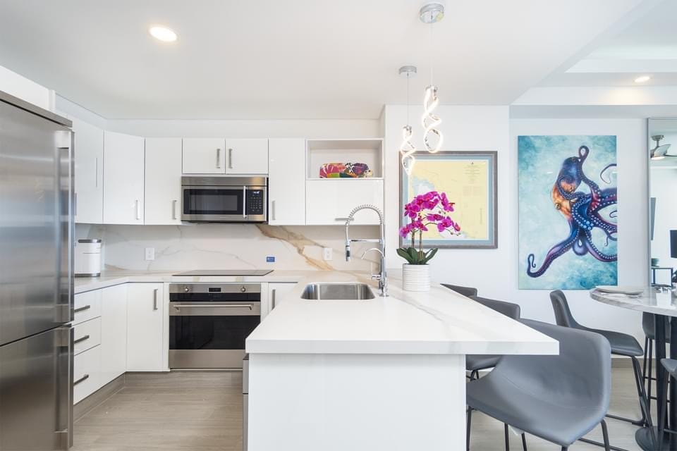 Surt a la piscina amb VISTES al port i acabat de moblar Prime, primer pis, 1500 peus quadrats i 2 dormitoris 2 banys. Tots els mobles nous, 65 dins. TV , llits nous, aire condicionat, rentadora i assecadora,internet, barbacoa i mininevera a la terrassa i 3 barbacoes més amb mininevera a la zona comuna amb 2 jacuzzis. Accés a un gimnàs, accés directe a restaurants i bars de fàcil accés, la capçalera dels dormitoris tenen llum nocturna