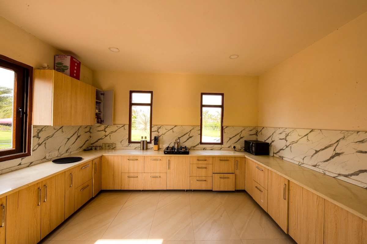 Escapa't al teu propi oasi a Nova Delhi, Índia. Aquesta propietat de 28800 peus quadrats és una escapada de cap de setmana tranquil·la envoltada de natura i el Santuari de Fauna Silvestre d'Asola. Gaudeix de festes, jocs i activitats en un ambient serè. Els aspectes més destacats inclouen una taula de billar que ofereix hores infinites de competició i entreteniment amistós, una foguera a l'aire lliure prepara l'escenari per a nits acollidores, reuneix-te al voltant de la calidesa de les flames i comparteix històries sota el cel estrellat. Perfecte per relaxar-se i crear records duradors.