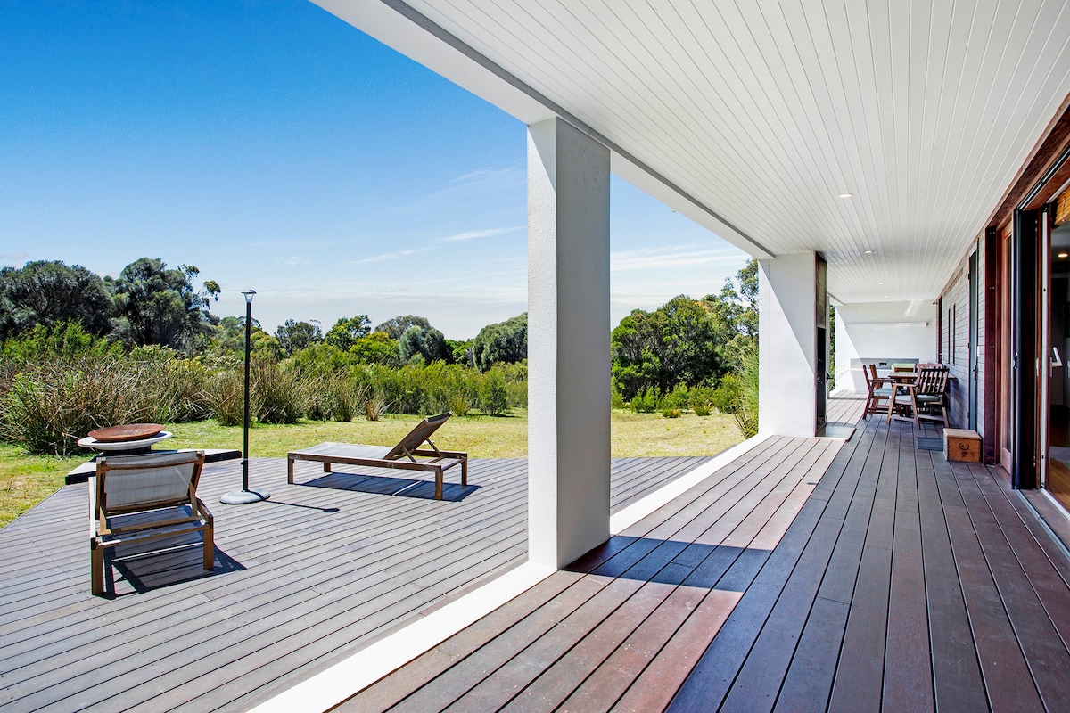 Relaxa't en aquest espai tranquil i elegant. A poca distància a peu de platges precioses per nedar i caminar. Parcs nacionals. Completament tancat per a nens. Barbacoa a l'aire lliure i zona d'entreteniment. Dutxa a l'aire lliure per després de la platja. El bany principal és un balneari amb una dutxa i una banyera enormes. Calefacció/ aire condicionat eficients. Finestres de doble vidre per mantenir la calor a l'hivern i refrescar-se a l'estiu amb pantalles. Televisor intel·ligent, amb internet i espai d'estudi. Màquina de cafè Smeg, torradora i bullidor, equip de cuina fantàstic