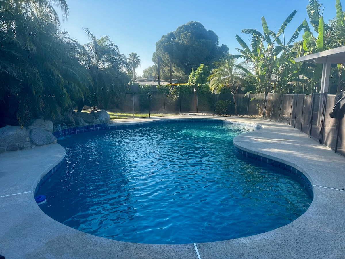 *New Listing* Modern clean home with new appliances & new furniture. Peaceful and spacious 3 BR/2BA, private large backyard with pool and patio, 2 car garage, A/C, laundry room, work space. High speed WIFI, 2 - 4K smart tv's, complementary coffee & tea. Business or pleasure...this house has all the amenities. You are guaranteed a clean disinfected house with fresh linens & towels. Guests have access to parking in garage, driveway & street. Close to freeway, shopping, golf course & restaurants.