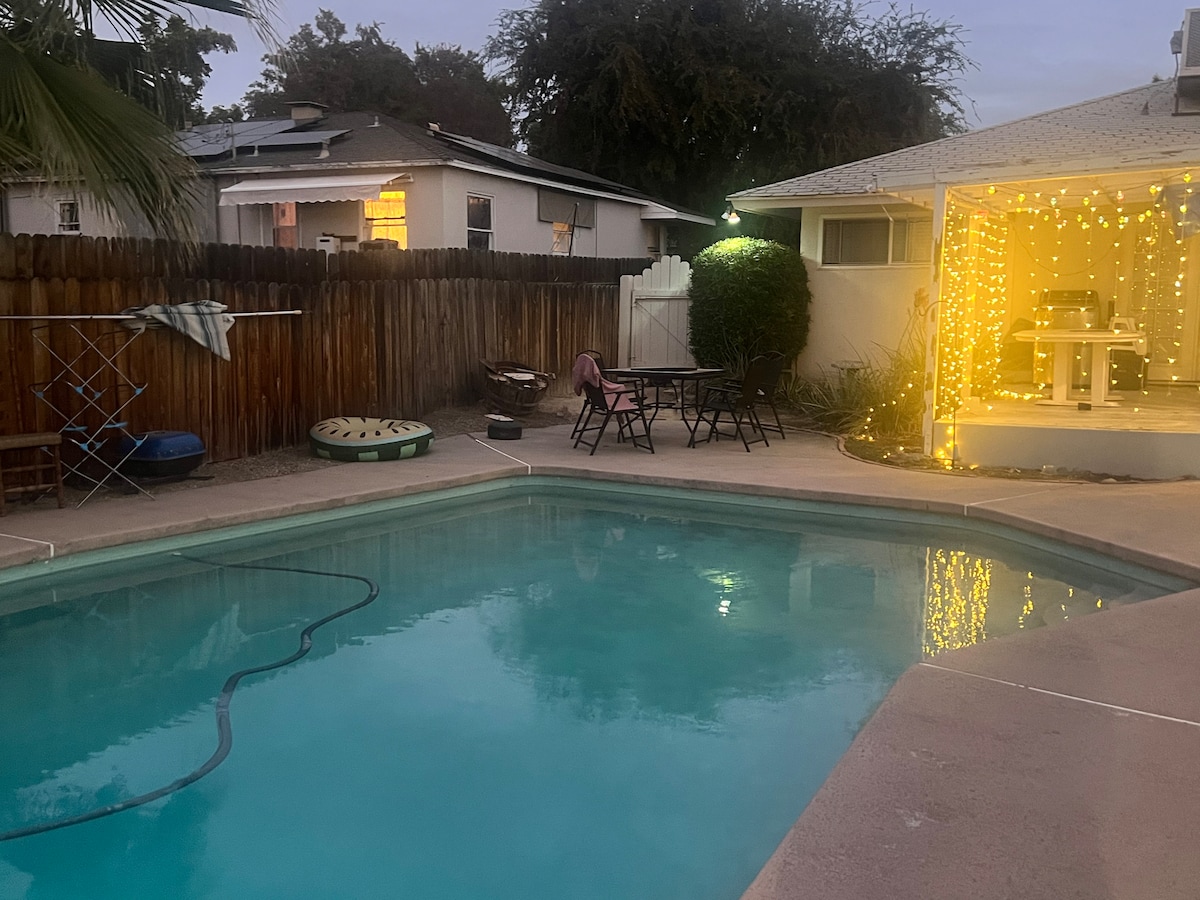 Et donem la benvinguda al teu vibrant oasi boho a Bakersfield! Aquesta casa de tres dormitoris bellament remodelada disposa d'una acollidora decoració elèctrica d'espai obert amb barra exprés. El pati del darrere té una piscina enorme, una foguera i un bar tiki perfecte per relaxar-se al costat de la piscina. Cada dormitori ofereix un encant únic, que garanteix la comoditat per a tots els hostes. Ben situat a la vora de Calloway, estàs a minuts dels llocs més populars de la ciutat. Gaudeix de la relaxació i la diversió en aquest colorit refugi.