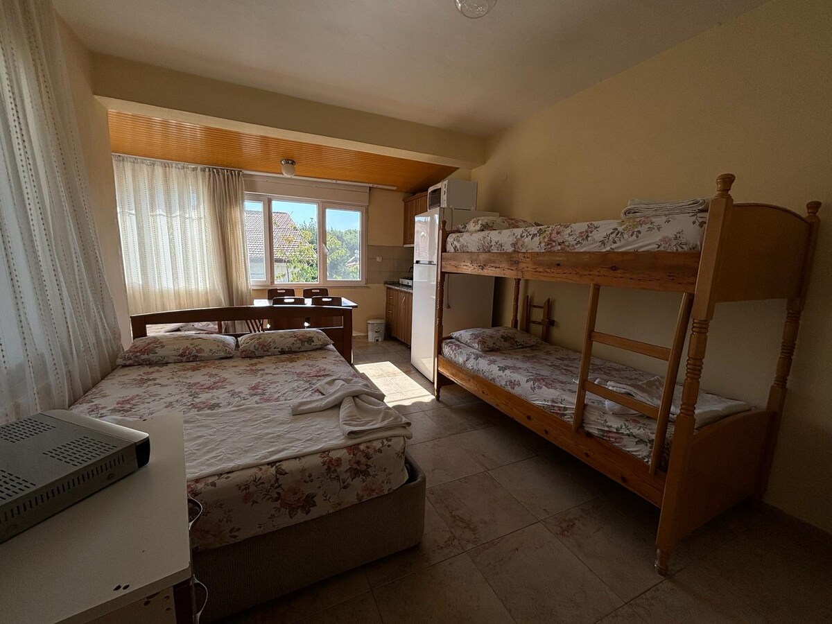 El nostre alberg ofereix un ambient familiar i acollidor al centre d'Ören. Pots passar les vacances amb tota la tranquil·litat en aquest entorn tranquil on et sentiràs segur i com a casa. Gràcies a la nostra ubicació, que es troba a només 150 metres de la platja pública d'Ören i a 50 metres del basar, ho tindràs tot a l'abast. La nostra ubicació al centre de la badia d'Edremit facilita que els nostres hostes puguin visitar totes les parts de la badia. Si busques un allotjament senzill, còmode, net i cèntric, t'esperem al nostre alberg.