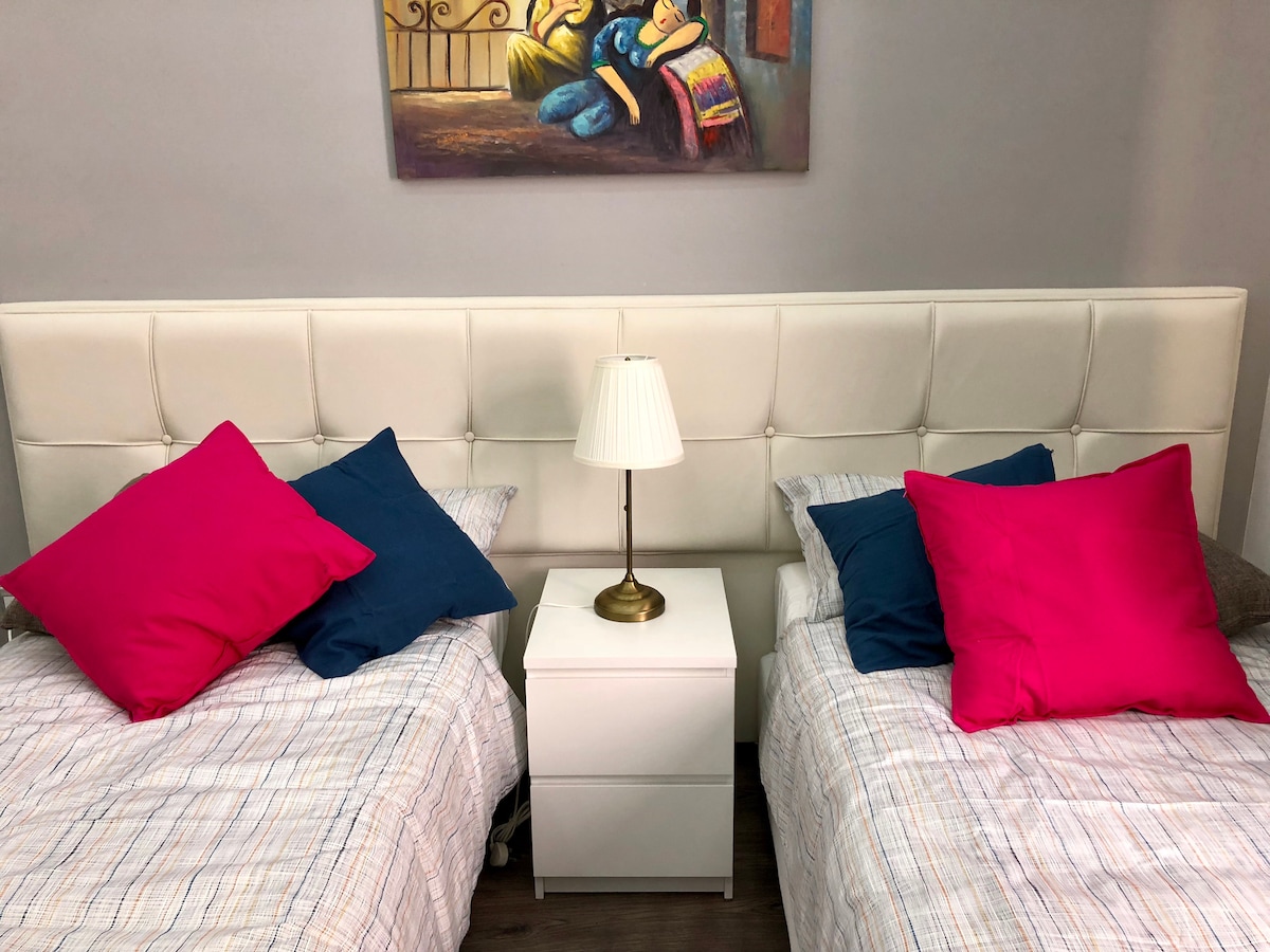 Terrat moblat de primera qualitat amb 2 dormitoris i un bany gran, decoració molt elegant amb il·luminació molt relaxant a tot el pis, televisor intel·ligent de 50 polzades, microones, forn, nevera, rentadora amb assecadora, cuina gran totalment equipada i molt més, situat en un barri meravellós i en un edifici nou i molt agradable, l'ascensor puja fins al 3r pis i després un pis més fins al terrat, molt a prop de tot tipus de botigues, fleques, farmàcies, tintoreries, tot el que et passi pel cap.