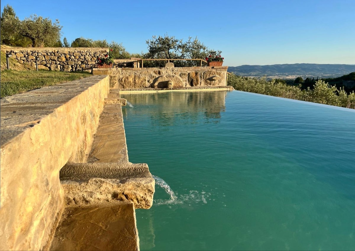 Et donem la benvinguda al nostre encantador apartament a Fattoria Fontenovo, a Umbria, entre turons verds!Aquest acollidor refugi a la nostra històrica granja Fontenovo, propietat de la nostra família durant més de 100 anys, ofereix la barreja perfecta de privacitat i tranquil·litat. Algunes zones de l'espaiosa vil·la romanen desocupades i d'altres estan reservades per al teu ús. Durant l'estada, seràs l'únic ocupant, a part dels propietaris que de tant en tant poden estar en una altra part de la casa. Gaudeix dels exuberants jardins, la piscina privada i el camp tranquil.