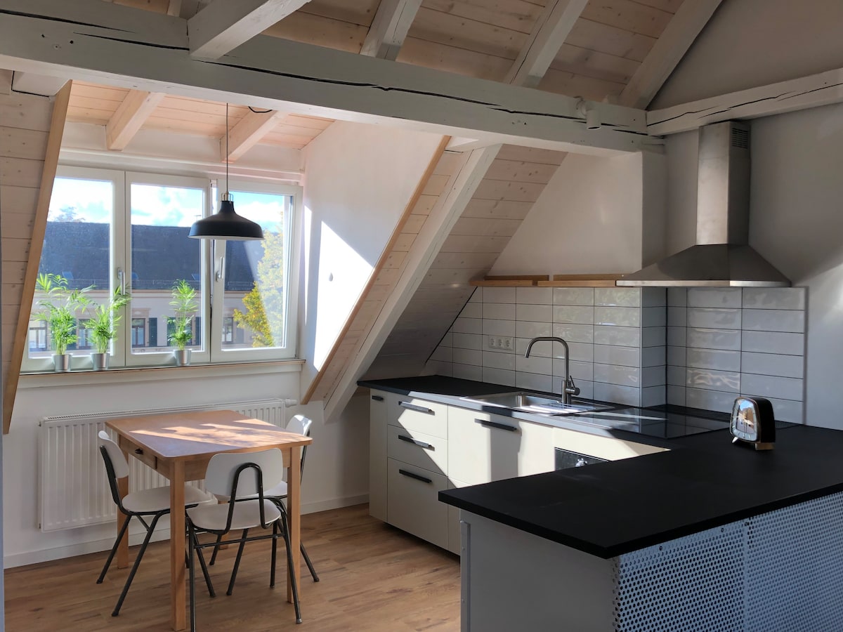 Pis d'una habitació modern, recentment reformat, tranquil i totalment equipat en una molt bona ubicació. A més, ofereixo dues bicicletes, que pots utilitzar de forma gratuïta. El bany és ampli i la cuina americana està separada de la zona de dormir. A poca distància del casc antic està a només uns 15 minuts, es pot caminar relaxat al llarg del riu. Hi ha aparcament gratuït. A la cuina americana totalment equipada hi ha dues plaques i un microones amb funció de forn.
