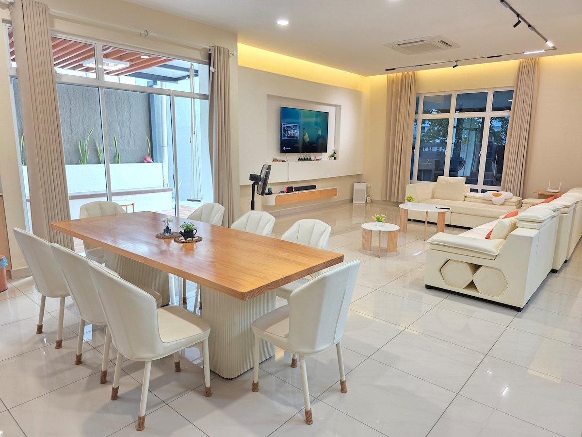 Welcome to our [LoDonHeartBeat], Desaru, it is ideal for families or friends seeking a peaceful getaway. With 5 bedrooms accommodating up to 25 guests Features: 🛡️24-Hour Security: Your safety is our priority with dedicated guards. 🎢 Near Adventure Park: Just 15-20 mins from Desaru Coast Adventure Waterpark. 🚗Private Parking: Hassle-free parking for your convenience. ☮️ Entertainment and Peace: With the huge size of the swimming pool, pool table, karaoke, games, and BBQ equipment!