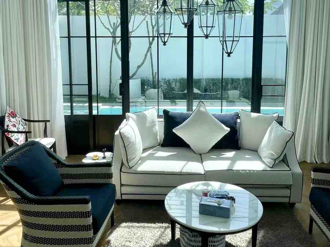 Aquesta moderna vil·la de 2 dormitoris es troba a la finca tancada de Shambhala, a poca distància a peu de Boat Avenue i Laguna. Disposa d'1 dormitori doble i 1 dormitori doble amb bany privat, piscina privada poc profunda (1 m de profunditat) amb gandules i una cuina totalment equipada amb menjador. Disposa de wifi d'alta velocitat a tota la propietat i televisors de pantalla plana. El nostre equip de conserge estarà disponible per ajudar-te amb els trasllats a l'aeroport, el servei de xef, les reserves turístiques i respondre a qualsevol pregunta que puguis tenir durant l'estada.