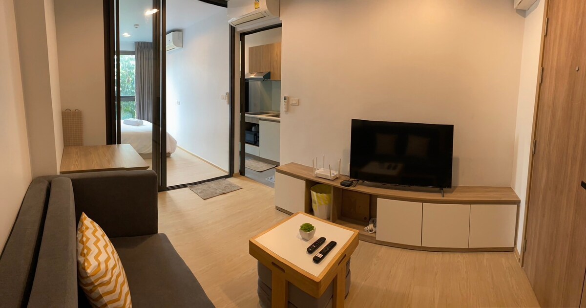 Apartament totalment privat, conté 1 dormitori, 1 sala d'estar, 1 bany, balcó privat. A 300 metres de phra khanong MRT A la planta baixa del pis hi ha una botiga de massatges 711Coffee shop Allotjament ben equipat 1, estris de cuina com ara nevera, televisor, microones, vajilla 2, trasllat òptic d'alta velocitat 500 Mbps/500 Mbps 3, tovalloles de bany, xampú, sabó corporal, condicionador, sabó de mans 4, assecador de cabells, taula de planxar 5, rentadora, penja-robes, subministraments de bugaderia