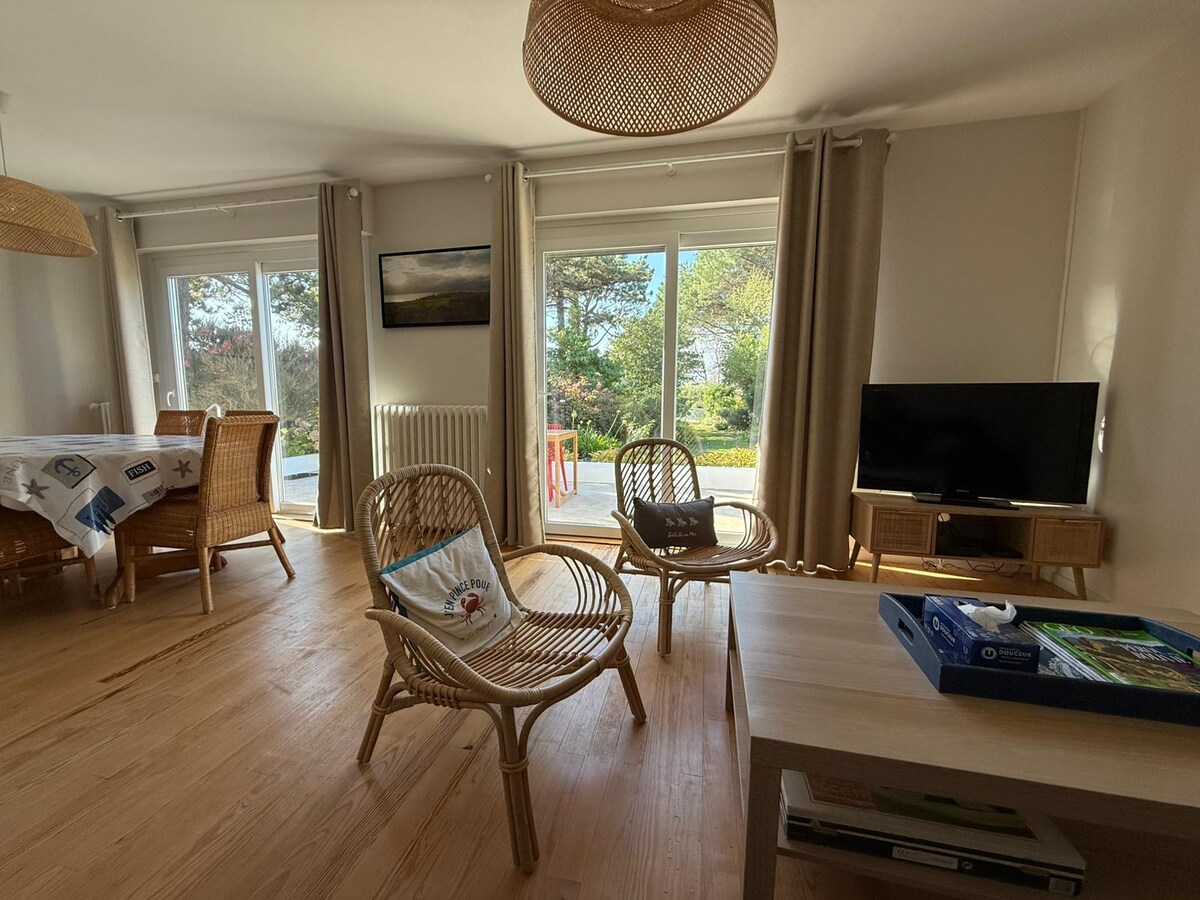 Senderistes, parelles, amics, família ..., viu l'experiència Belle-Île AL FAR! Pis independent, completament reformat el 2024 a la primera planta de la nostra casa. Entrada privada. Llum i color, el pis de 60m² ofereix tot l'equipament modern i còmode amb 2 dormitoris, amb capacitat per a 4 persones. A prop de platges, GR 340 i la natura. El jardí és assolellat tot el dia i és ideal per esmorzar o aperitius.