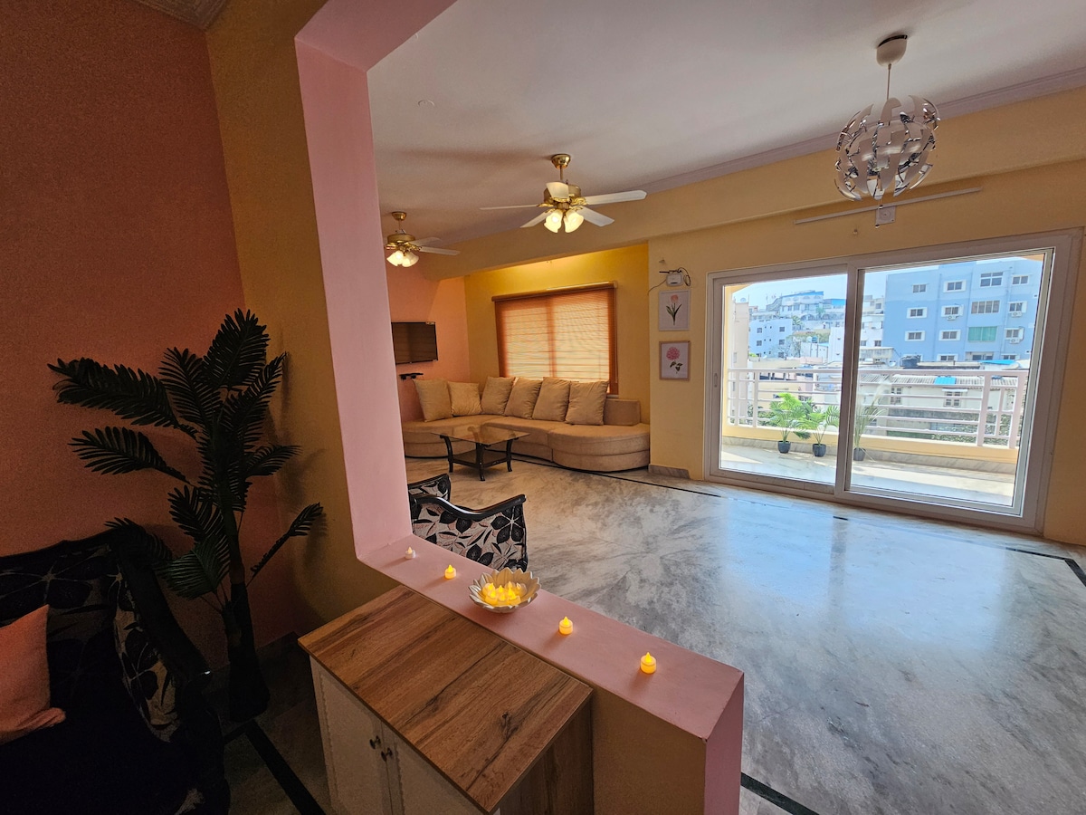 Gaudeix del luxe i la tranquil·litat al nostre espaiós àtic de Tolichowki. Perfecte per a parelles i famílies petites, aquest refugi serè ofereix un accés fàcil a Hitech City, Gachibowli, Jubilee Hills i Banjara Hills. Gaudeix de vistes panoràmiques, un disseny modern i un entorn exuberant en una colònia tranquil·la a només un minut del carrer principal. Ja sigui per negocis o per oci, el nostre àtic és el lloc ideal per relaxar-se i explorar la ciutat. La converteix en una destinació ideal per als turistes mèdics.