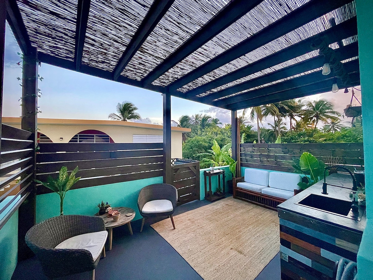 Palma Dorada Beach House It is a space designed especially for couples seeking privacy. With a unique location, access to beaches, shops, restaurants, and entertainment venues, it's the perfect destination for locals and foreigners seeking relaxation and memorable moments. Ideal for a romantic getaway, here you'll find the perfect balance of comfort, privacy, elegance, and the natural beauty that Puerto Rico's north coast offers.