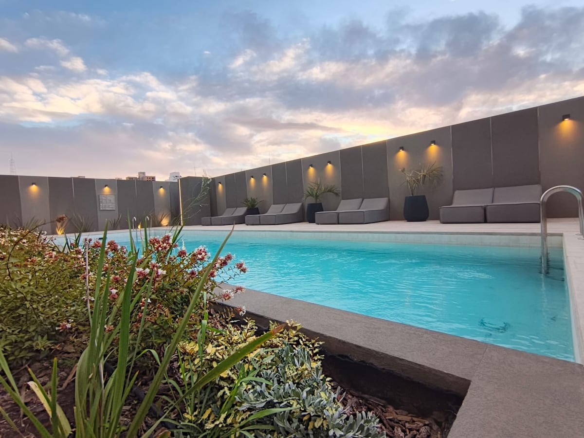 Gaudeix d'un monoambient Premium al centre: piscina, barbacoa i espai de cotreball. Gaudeix d'un monoambient modern i lluminós, totalment equipat, amb piscina i quinxo per als teus moments de relaxació. Disposa d'un llit doble i la possibilitat d'afegir un llit addicional d'un quadrat, balcó amb vistes a la ciutat i una ubicació immillorable: a prop de bars, restaurants i tot el que necessites. Ideal per a estades curtes o llargues.