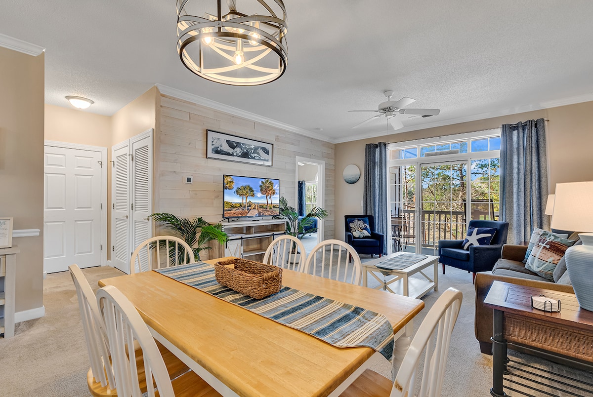 Cerques una escapada d'estiu a Barefoot Landing? Gaudeix de la nostra immaculada casa de 2 dormitoris, amb accés a una piscina, un balcó privat i aparcament gratuït. A només uns minuts de la platja, botigues i restaurants. 2 dormitoris i un sofà llit, té capacitat per a 6 persones. Gaudeix d'unes vistes impressionants del camp de golf des del teu balcó privat. Explora quatre camps de golf de competició, gaudeix de les botigues i els restaurants de Barefoot Landing o relaxa't a la piscina tancada. L'allotjament està situat a la segona planta. No hi ha ascensor en aquest edifici.