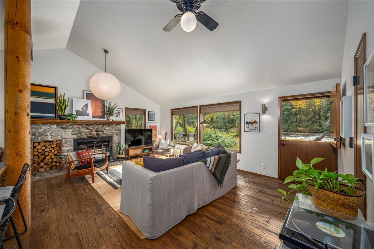 UPDATE: Backyard is limited to deck after loss of riverbank (See pictures). Everything else is in working order. This charming chalet features comfortable furnishings, a fully equipped kitchen, and a relaxing outdoor space with a fire pit. Enjoy easy access to nearby hiking trails, skiing, and fishing. Whether you're looking for outdoor adventures or indoor relaxation you're sure to have an unforgettable stay.
