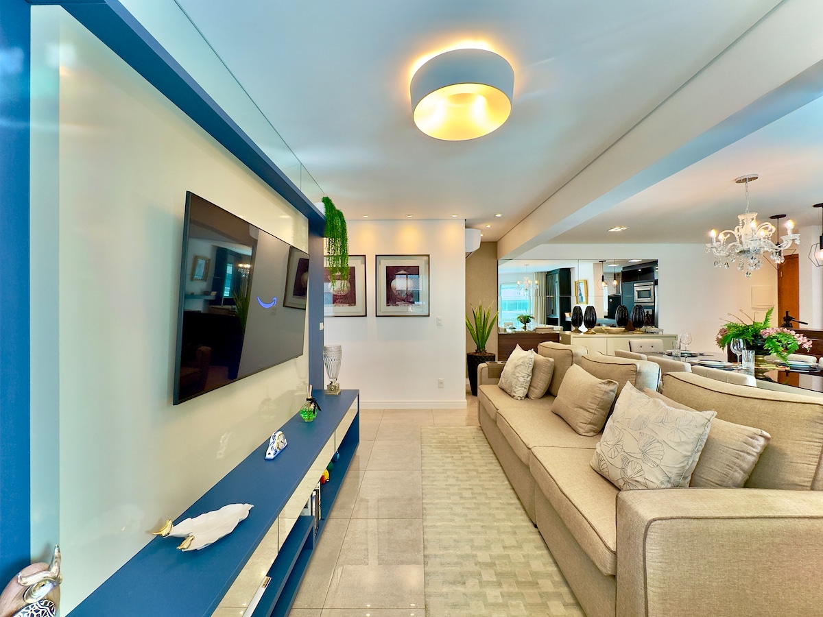Diverteix-te amb tota la família en aquest allotjament elegant. Condomini Home Clube, accés per reconeixement facial, parc aquàtic, piscina infinita amb vistes al mar, sala de jocs, pista, piscina climatitzada, sauna, gimnàs, parcs infantils. A 15 minuts de Beto Carrero World, a 25 minuts de l'aeroport de Navegantes i a 1 hora i 20 minuts d'Alles Park Pomerode. Pis decorat i equipat perquè la teva família gaudeixi. Seguretat i comoditat, accés directe a la platja.