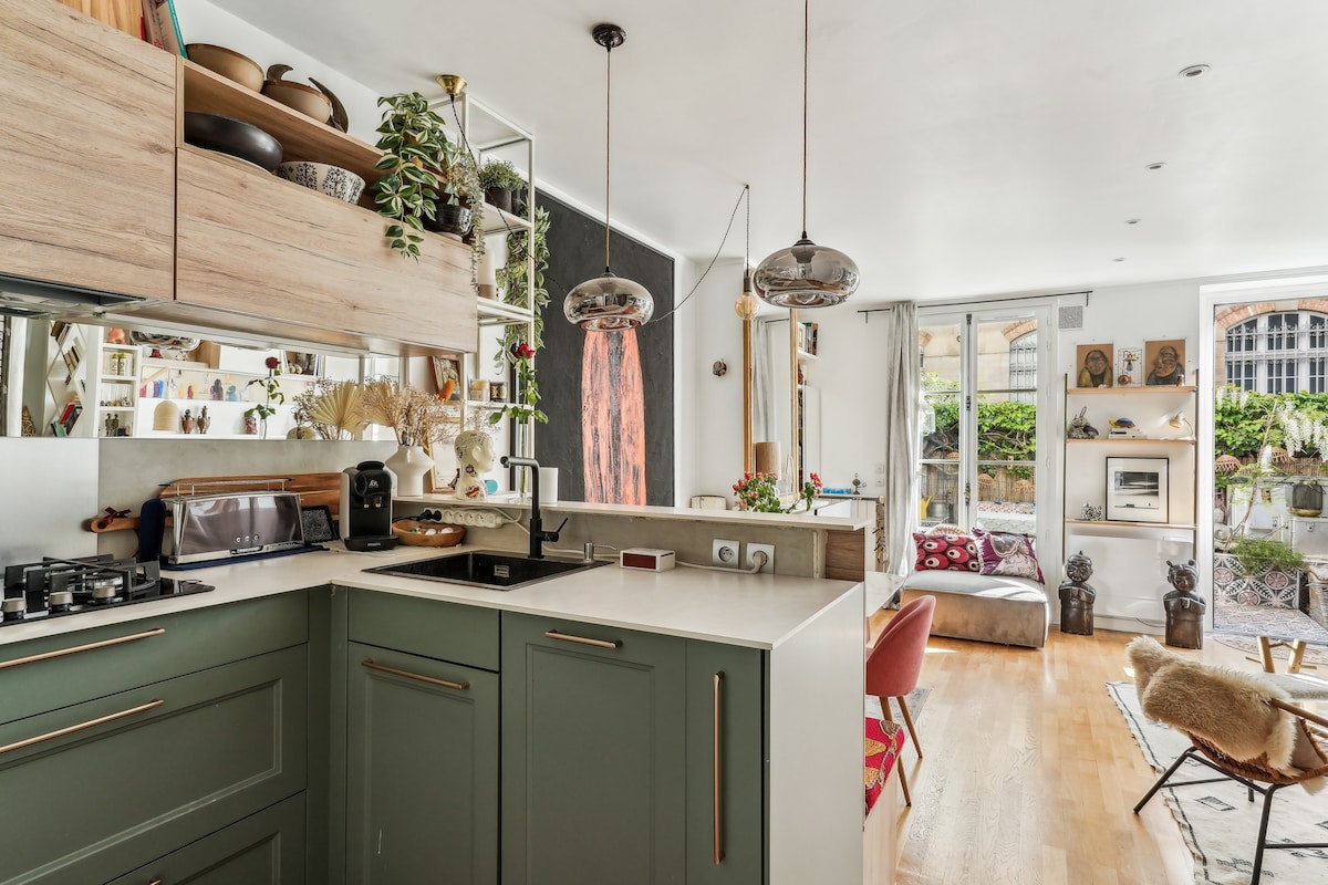 Green balcony with view on 'sacré coeur church',with amazing deco. Great neighborhood in SOPI=south of pigale and famous 'rue des martyrs’ (see book ´the only street in paris’), montmartre, opera, louvre. 3 rooms (250 ft2 /70m2) for couple (no friends parties or babies). Lux kitchen (famous french brand ´la cornue'), escalator, air conditioning+fans, good bed &couch...) . Photo, design & flea market decoration.