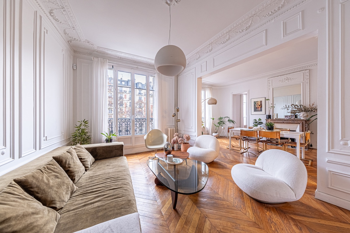 Boasting herringbone parquet flooring, fine furnishings and abundant natural light, this sophisticated 110m2 apartment offers a bright, elegant, warm and luxurious atmosphere. The apartment, with fireplace and moldings, combining charm, calm and comfort is located in one of the oldest passages in the historic center of Paris. This apartment has an official tourist accommodation operating license. So it's perfectly legal.