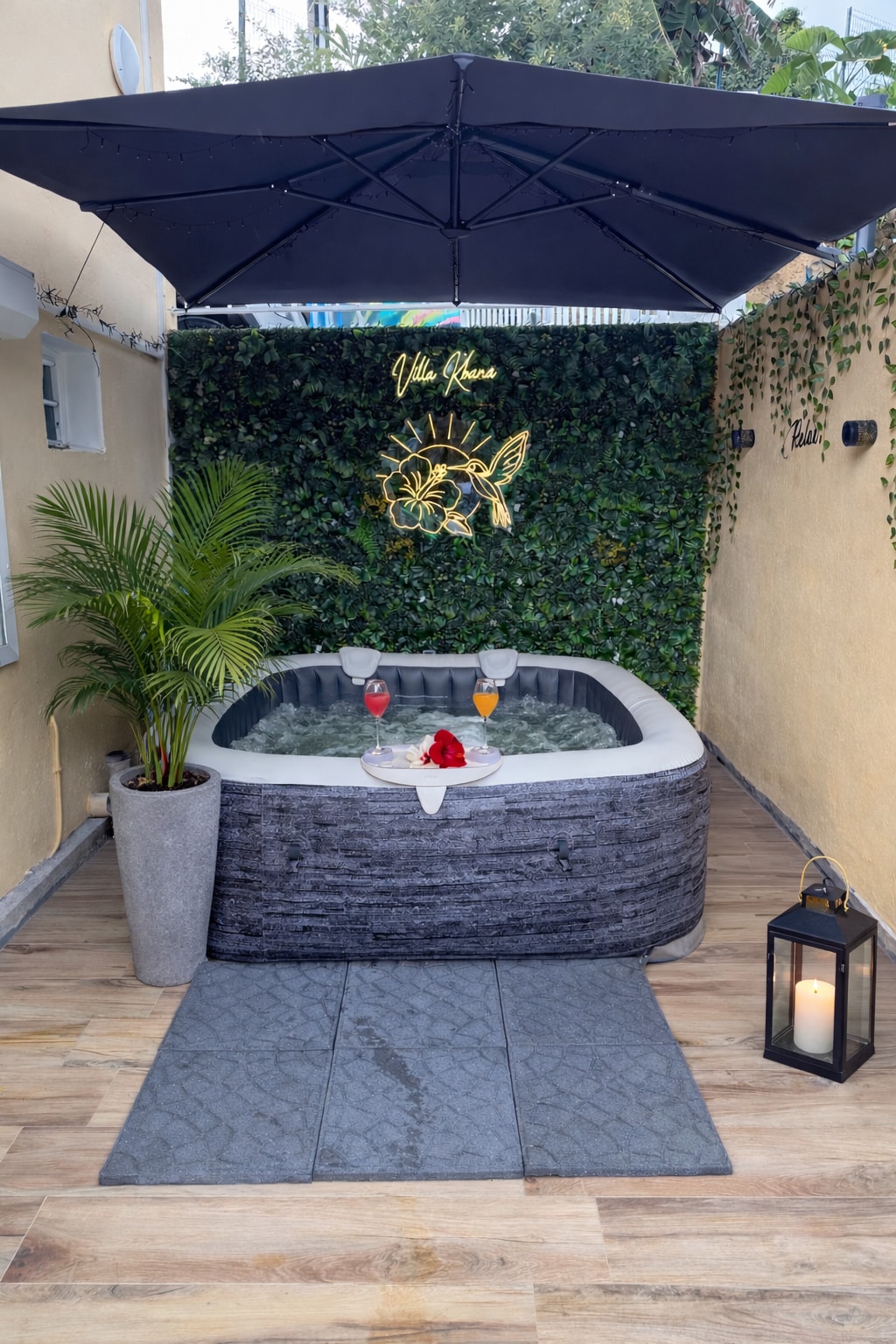 Chrysalide – Terrassa amb vistes al mar i al volcà, tranquil·litat zen