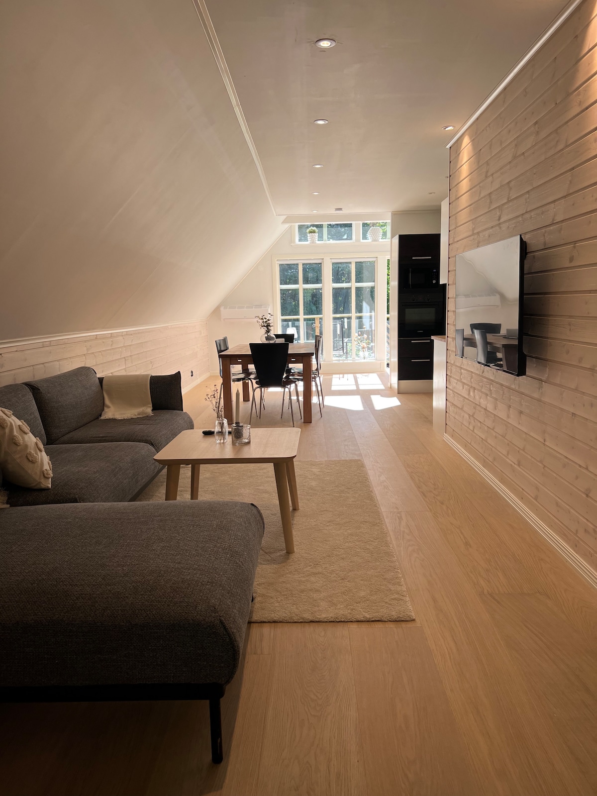 Pis encantador al centre de Båstad amb botiga de queviures, restaurants, gärsthamn, platja i centrecourten a 5 minuts a peu. Vistes al mar des de la cuina, la sala d'estar i el balcó. Perfecte per a una o dues persones, però funciona molt bé per a famílies de fins a 5 persones, amb el seu propi allotjament per a tres nens en un acollidor altell per dormir. Benvingut a un allotjament molt cèntric a la ciutat d'estiu i de tennis número 1 de Suècia ☀️💦