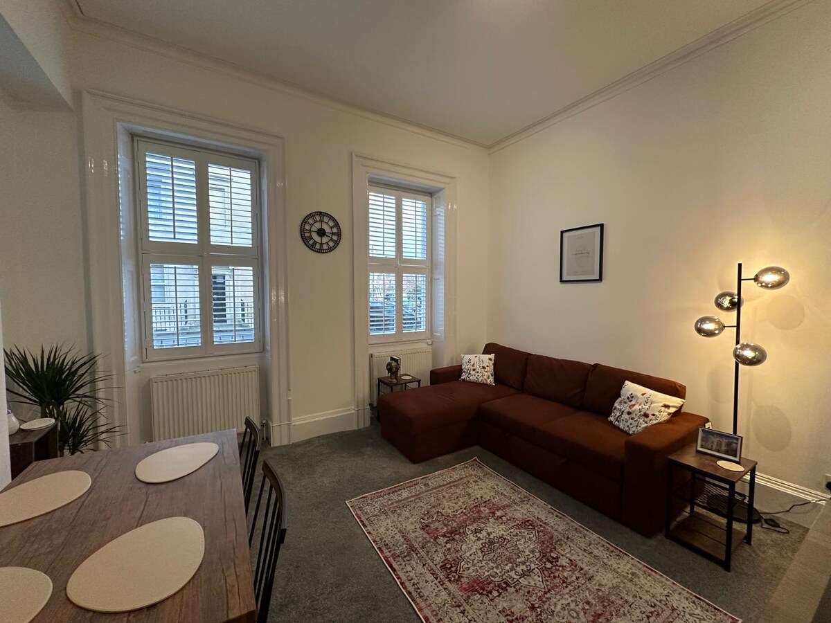 El bany número 7 és un preciós apartament de grau II situat al centre de Bath. Situats a St James 's Parade, estem a un minut a peu de les atraccions turístiques, restaurants, bars i botigues de la ciutat. El nostre apartament georgià del segle XVIII té un espai habitable meravellós i espaiós amb sostres alts i un conjunt impressionant de finestres en forma d'arc original, amb vidres secundaris per a la calidesa. Còmode i tranquil, l'espai principal es complementa amb una cuina/menjador de bon gust i un bany modern amb dutxa.