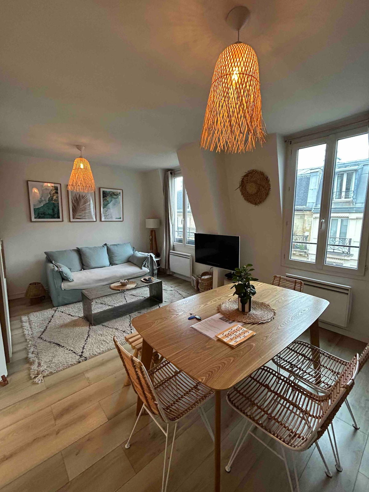 Pis de luxe renovat a París 17, entre Monceau i Batignolles. Lluminós, tranquil i elegant, amb sostres alts, parquet d'espiga i acabats de qualitat. • Llit « queen size» + sofà llit • Cuina totalment equipada amb barra de marbre • Dutxa italiana a peu Una autèntica sensació d'hotel boutique en una zona molt sol·licitada. Perfecte per a parelles, famílies o estades de negocis. Inclou wifi ràpid i televisor intel·ligent.