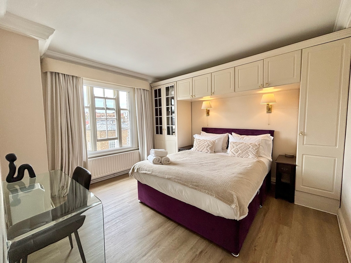 Directly opposite Buckingham Palace, in the heart of central London. A luxury one-bedroom apartment, in a historic 19th-century Grade II Listed townhouse. Ultra-prime St. James's Park location, 10 min walk from attractions, e.g. Parliament, Big Ben, Westminster Abbey, Belgravia & Mayfair. A quiet escape. Meticulously appointed, fully equipped kitchen, luxury interiors & 24/7 concierge. Great for Kids, 1 King Bedroom & 1 double sofa bed (in lounge or bedroom, your choosing).